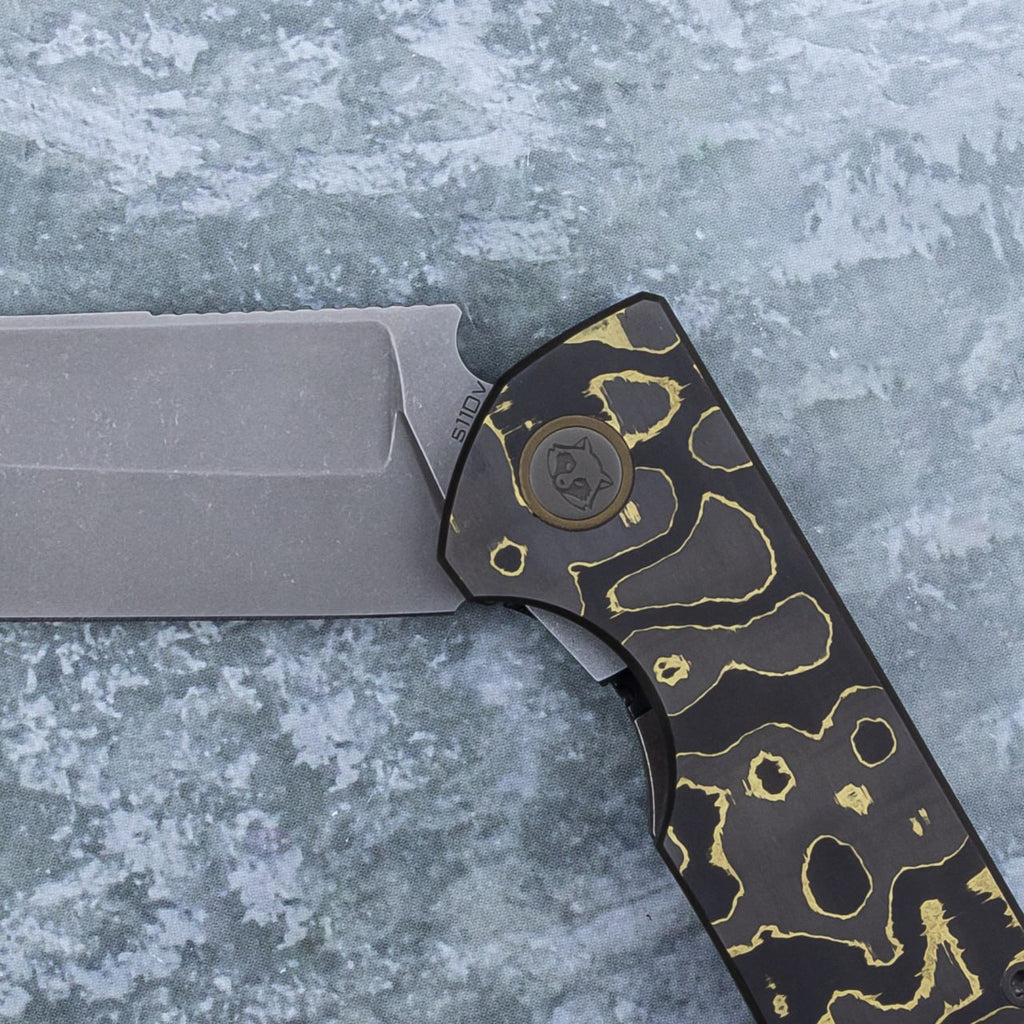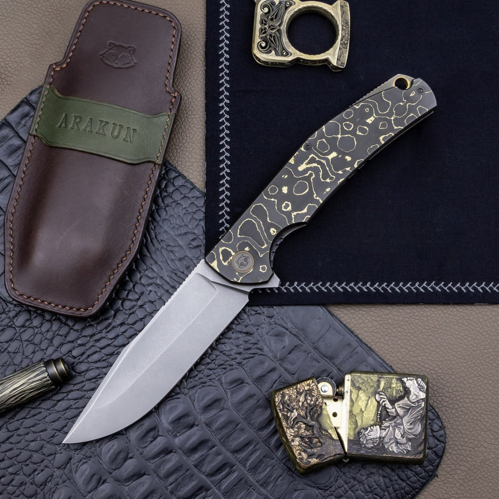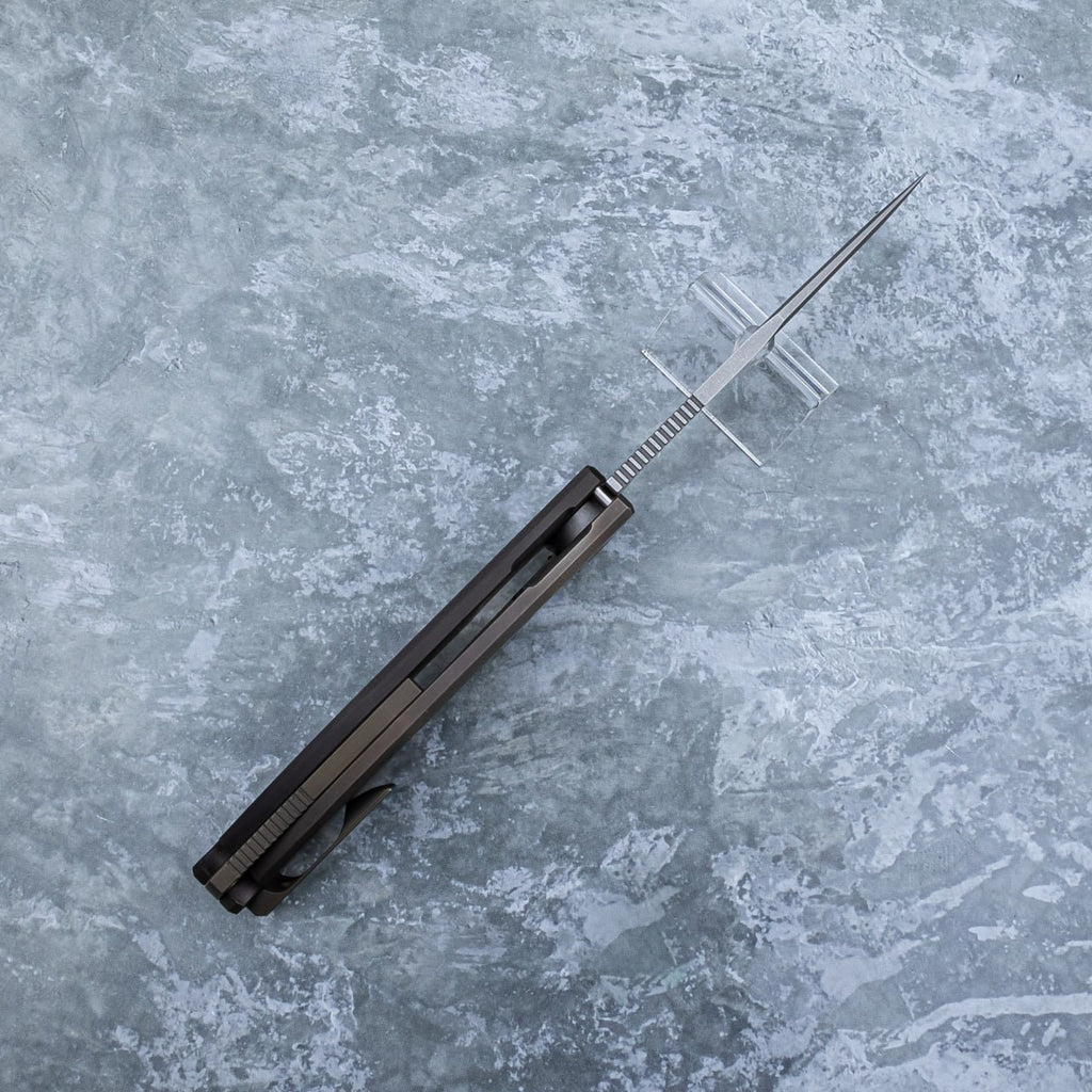 The flagship Antago, made of premium S110V powder steel and featuring a complex blade grind with a wide fuller!