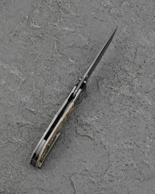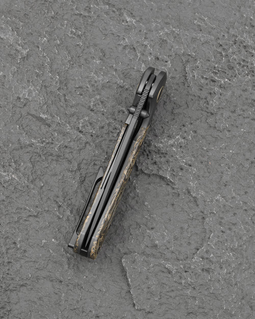 The Bestech Constellation BT2501C represents a pinnacle of modern folding knife engineering, combining premium materials with meticulous craftsmanship. This collaboration with designer MUNKO KNIVES features a proprietary Magnact blade finished in black PVD, delivering exceptional edge retention and corrosion resistance. The handle showcases a sophisticated blend of aerospace-grade titanium paired with dark matter gold fat carbon fiber inlays, creating both visual distinction and superior ergonomic performance. The frame lock mechanism ensures reliable blade security during demanding tasks. At 73 grams, this knife achieves an impressive balance between durability and portability, with a 3.055" blade hardened to 62-64 HRC for optimal cutting performance. The titanium clip provides secure carry options while maintaining the knife's refined aesthetic. Whether for professional use or serious collectors, the Constellation BT2501C delivers precision, reliability, and distinctive design in a compact 4.189" closed profile.