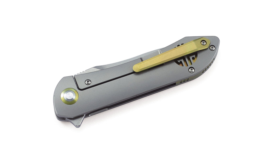 The Bestech Emperor BT1703A represents a pinnacle of modern folding knife engineering, combining premium materials with refined functionality. Built around a CPM-S35VN stainless steel blade finished with a ceramic coating, this knife delivers exceptional edge retention and corrosion resistance—ideal for demanding cutting tasks. The blade measures 3.54 inches and maintains a substantial 0.157-inch thickness for durability without excessive weight. The frame lock design, constructed from aerospace-grade 6AL4V titanium, provides a secure locking mechanism while keeping the overall weight to just 132 grams. The titanium handle offers superior strength-to-weight ratio and excellent ergonomic feel. A flipper ball bearing system enables smooth, rapid deployment with minimal effort, making this knife responsive and reliable in the field. At 8.50 inches fully extended and 4.96 inches when closed, the Emperor strikes an excellent balance between reach and portability. The grey titanium finish provides a professional aesthetic while resisting fingerprints and wear. Whether for everyday carry, tactical applications, or serious outdoor use, this knife combines performance-grade materials with thoughtful engineering that serious knife enthusiasts will appreciate.