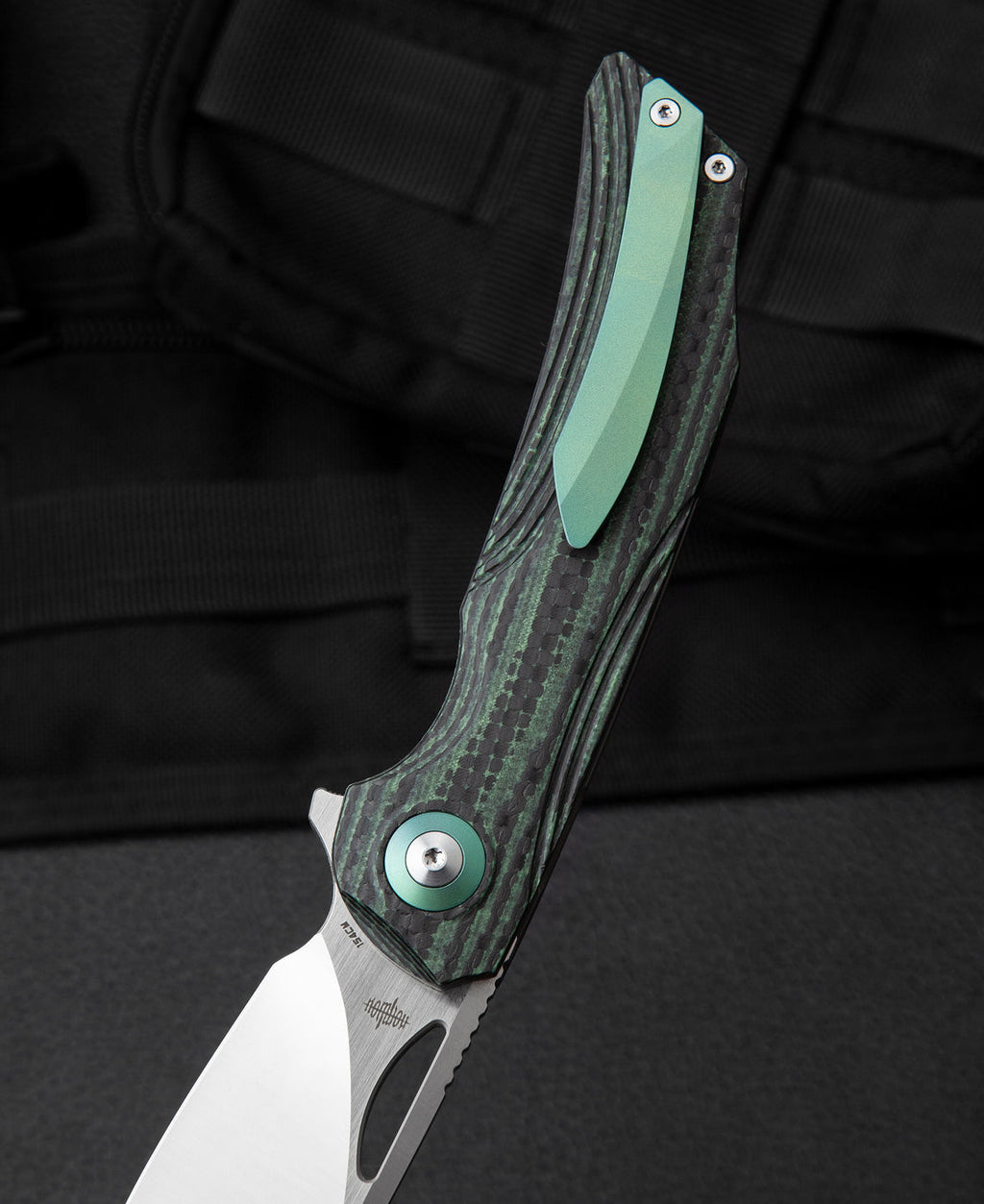 The Bestech Falko BL01C represents a refined approach to everyday carry design, combining premium materials with practical engineering. Built around a 154CM stainless steel blade finished in satin, this knife delivers excellent edge retention and corrosion resistance—ideal for demanding cutting tasks. The handle integrates carbon fiber and G10 layers for a lightweight yet durable construction that resists wear and environmental stress. A titanium clip ensures secure pocket carry without compromising aesthetics, while the ceramic ball bearing system enables smooth, reliable deployment. The liner lock mechanism provides dependable blade security during use. At 8.39 inches open and just 4.84 inches closed, the Falko balances accessibility with discretion. Weighing only 123 grams, it won't burden your pocket. Designer KOMBOU's attention to detail is evident throughout—from the ergonomic proportions to the thoughtful material selection. Whether you're a knife enthusiast or seeking a serious cutting tool, this folder delivers performance and refinement in equal measure.