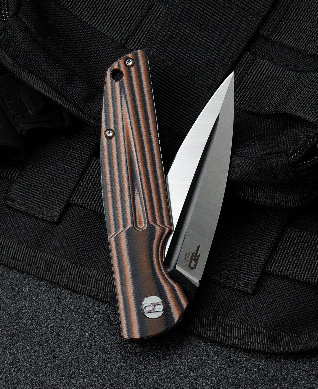 The Bestech Fin BG34C-2 represents a refined approach to mid-size folding knife design, engineered for users who demand both performance and reliability. Built around a 14C28N stainless steel blade with a satin finish complemented by black PVD coating, this knife delivers excellent edge retention and corrosion resistance in a compact package. The blade measures 3.67 inches, providing versatility for everyday cutting tasks while maintaining maneuverability in confined spaces. The handle construction utilizes premium G10 material in a striking black, orange, and beige color scheme, offering superior grip texture and durability across varied conditions. A steel clip ensures secure carry, while the ceramic ball bearing pivot enables smooth, reliable blade deployment. The liner lock mechanism provides dependable blade security without compromising ease of operation. At 134.5 grams with an overall length of 8.39 inches when open and 4.72 inches closed, the Fin BG34C-2 strikes an ideal balance between capability and portability. The 3.5mm blade stock contributes to structural integrity while maintaining cutting efficiency. Designed by Bestech, this knife appeals to collectors and practical users alike who appreciate thoughtful engineering and refined aesthetics.