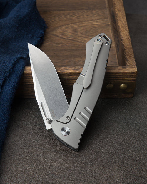 The Bestech Keen II BT2301A represents a pinnacle of modern folding knife engineering, combining premium materials with meticulous craftsmanship. Its CPM-S35VN blade—finished with a distinctive stone wash and satin treatment—delivers exceptional edge retention and corrosion resistance, making it ideal for demanding cutting tasks. The titanium and carbon fiber handle construction provides an optimal balance of durability and lightweight performance, while the frame lock mechanism ensures reliable blade security during use. Measuring 9.82 inches when fully extended and a compact 5.63 inches when closed, this knife offers versatile carry options without compromising cutting capability. The 4.19-inch blade with precise 4.0mm thickness is engineered for both slicing precision and structural integrity. Ceramic ball bearings enable smooth, responsive deployment that seasoned knife enthusiasts will appreciate. At just 151 grams, the Keen II minimizes fatigue during extended use while maintaining substantial presence in hand. Designed by the renowned Koenscraft, this frame lock folder exemplifies the intersection of functional design and premium materials, making it a distinguished addition to any serious collector's arsenal.