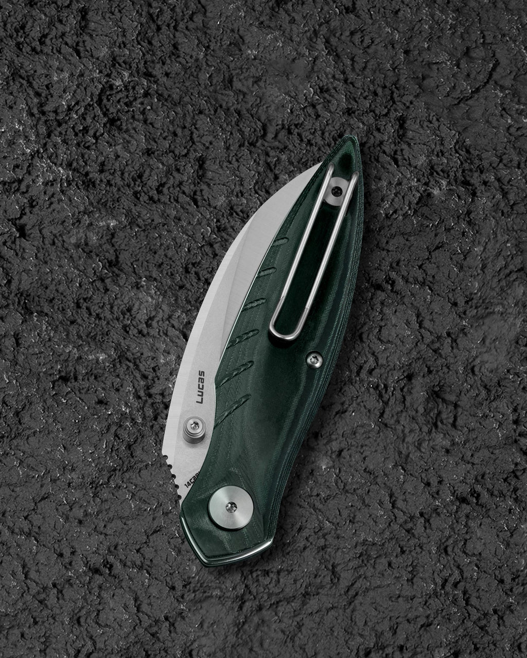 The Bestech Mantidae BG60E represents a refined approach to compact folding knife design, engineered for those who demand precision and reliability in their everyday carry. Built around a 14C28N stainless steel blade finished with a distinctive satin and stonewash treatment, this knife delivers both aesthetic appeal and practical edge retention. The blade measures 2.94 inches with a substantial 3.0mm thickness, providing the structural integrity needed for demanding tasks while maintaining excellent cutting performance. The handle construction utilizes premium Micarta in a striking green finish, offering superior grip texture and durability compared to standard materials. A ceramic ball bearing system ensures smooth, responsive blade deployment with minimal friction, while the liner lock mechanism provides secure blade retention during use. The steel clip is thoughtfully integrated for convenient pocket carry without compromising the knife's clean lines. At just 96 grams with a closed length of 4.00 inches, the Mantidae BG60E achieves an impressive balance between capability and portability. Designer Lucas has crafted a knife that transitions seamlessly from everyday utility to specialized applications, making it an excellent choice for professionals, outdoor enthusiasts, and collectors who appreciate quality craftsmanship and functional design.