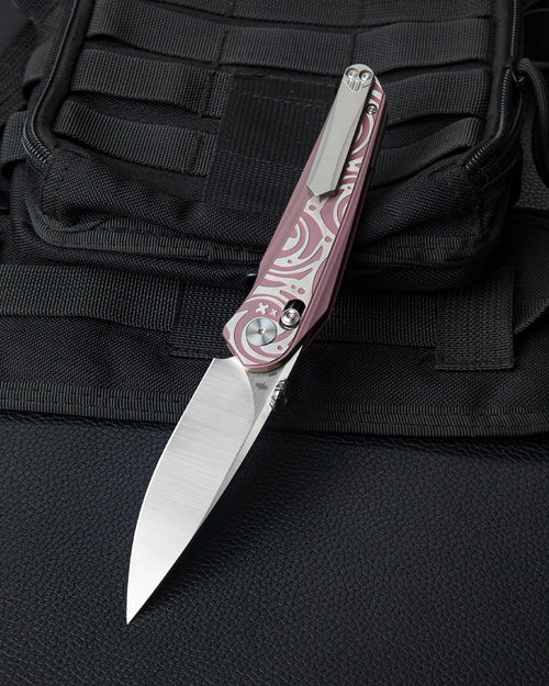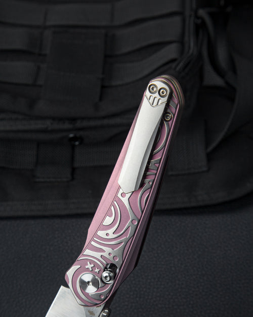 The Bestech Mothus BT2206D represents a refined approach to everyday carry design, combining premium materials with thoughtful engineering. Built around an M390 stainless steel blade finished in satin, this knife delivers exceptional edge retention and corrosion resistance—ideal for demanding cutting tasks. The titanium handle provides lightweight durability while maintaining structural integrity, and the distinctive purple anodizing adds visual character without compromising functionality. The crossbar lock mechanism ensures reliable blade security during use, while ceramic ball bearings enable smooth, controlled deployment. At 8.05 inches fully extended and just 116 grams, the Mothus balances presence with portability. The 3.47-inch blade geometry suits versatile cutting applications, from detailed work to general utility tasks. Designed by KOMBOU, this knife reflects meticulous attention to proportions and performance, making it a compelling choice for collectors and professionals who appreciate quality construction and material excellence.