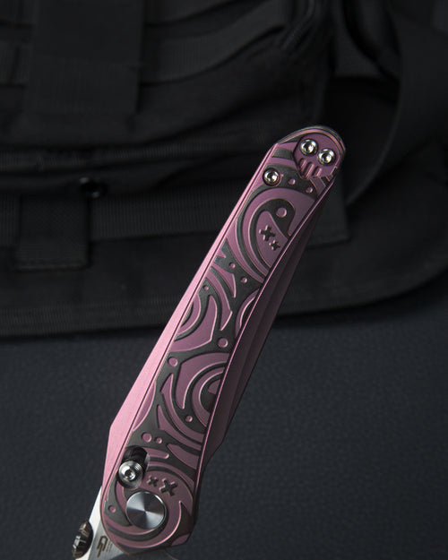 The Bestech Mothus BT2206E represents a pinnacle of precision engineering and refined craftsmanship. Featuring a premium M390 stainless steel blade with a hand-satin finish, this folding knife delivers exceptional edge retention and corrosion resistance—ideal for demanding cutting tasks. The titanium handle provides superior strength-to-weight ratio while maintaining an elegant aesthetic in striking purple. Engineered with a crossbar lock mechanism, this knife ensures reliable blade security during operation. Ceramic ball bearings enable smooth, responsive deployment with minimal friction. At 116 grams, the balanced weight distribution facilitates extended use without fatigue. The 3.47-inch blade length offers versatility across various cutting applications, while the compact 4.58-inch closed profile makes it highly portable. Designed by KOMBOU, this knife combines functional excellence with sophisticated styling. Whether for professional use or serious collectors, the Mothus BT2206E delivers the performance and durability expected from premium EDC equipment.