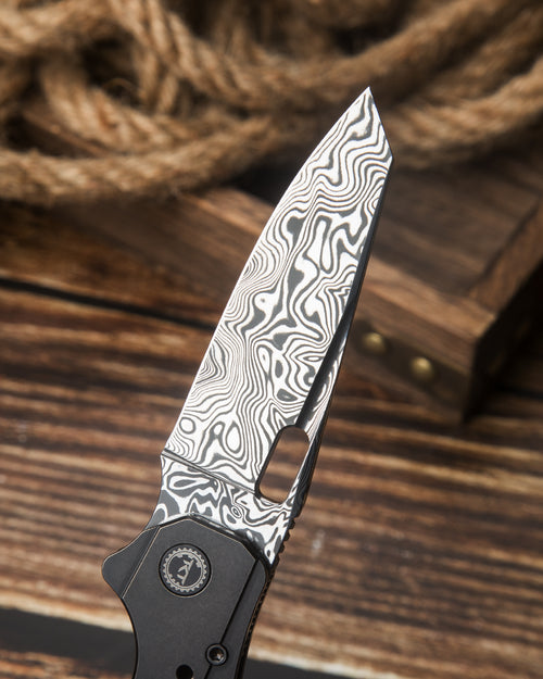 The Bestech Nyxie 3 BT2209E exemplifies contemporary tactical knife design with its striking Damascus blade and premium construction. Engineered by acclaimed designer Toddknifeandtool, this folder combines functional excellence with refined aesthetics for discerning users who demand both performance and visual distinction. The Damascus blade showcases intricate layered steel patterns, delivering exceptional hardness and edge-holding capability while creating a distinctive appearance that distinguishes this knife from conventional designs. The blade's 0.157" thickness provides optimal balance between cutting efficiency and structural durability for sustained field use. Constructed from aerospace-grade titanium, the handle offers uncompromising strength with minimal weight—a critical advantage for professionals and outdoor enthusiasts requiring extended carry comfort. The black titanium finish resists corrosion and maintains its appearance through rigorous use. The frame lock mechanism provides secure blade containment and reliable one-handed operation. Ceramic ball bearings facilitate smooth, precise deployment with minimal friction. The knife's proportions—7.79" open length and 4.35" closed—deliver substantial cutting reach while maintaining pocket-friendly dimensions. At 111g, it remains remarkably lightweight without sacrificing structural integrity. This is a serious tool for those who appreciate masterful craftsmanship and uncompromising performance standards.