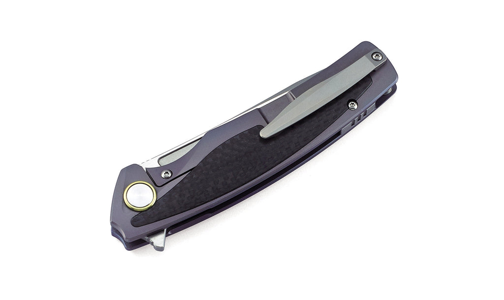 The Bestech Predator BT1706A represents a pinnacle of modern folding knife engineering, combining premium materials with meticulous craftsmanship. Built around a CPM-S35VN stainless steel blade finished with a ceramic bead blast, this knife delivers exceptional edge retention and corrosion resistance—ideal for demanding cutting tasks. The blade measures 3.54 inches with a robust 0.157-inch thickness, providing optimal balance between cutting performance and structural integrity. The handle showcases a sophisticated titanium and carbon fiber inlay construction, delivering both lightweight durability and refined aesthetics. The frame lock mechanism ensures secure blade lockup during use, while ceramic ball bearings enable smooth, responsive flipping action. The purple anodized titanium complements the carbon fiber accents, creating a visually striking tool that performs as beautifully as it appears. At 116.5 grams, this knife maintains excellent portability without compromising on substance. With an overall length of 8.39 inches and closed length of 4.8 inches, it fits comfortably in pocket or pack. Designed by BESTECH, the Predator BT1706A appeals to collectors and professionals who demand uncompromising quality in their everyday carry or tactical equipment.
