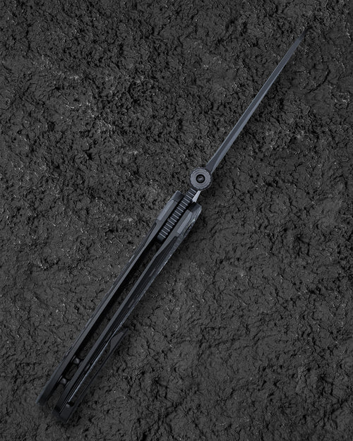The Bestech Prydwen BT2409D represents a pinnacle of modern folding knife engineering, combining premium materials with thoughtful design. Its Magnacut blade delivers exceptional edge retention and corrosion resistance, finished in a sleek black PVD coating that enhances durability while maintaining a professional aesthetic. The titanium frame lock mechanism provides reliable blade security with minimal play, while the titanium handle paired with carbon fiber inlays creates an optimal balance between strength and weight at just 109 grams. Measuring 8.36 inches when open and 4.68 inches closed, this knife offers practical carry dimensions without compromising cutting performance. The 3.68-inch blade, hardened to 62-64 HRC, maintains a keen edge through extended use. Ceramic ball bearings ensure smooth, consistent deployment, while the titanium clip and steel backspacer contribute to the knife's refined construction quality. Designed by Kombou, the Prydwen exemplifies precision craftsmanship for discerning users who demand both performance and elegance in their everyday carry tool.