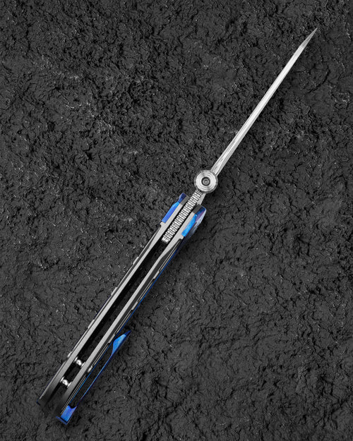 The Bestech Prydwen BT2409E represents a pinnacle of modern folding knife engineering, combining aesthetic refinement with functional excellence. Its Damasteel blade features a striking mirror-polished finish that showcases the distinctive layered pattern characteristic of Damascus steel, while maintaining a robust 60HRC hardness for superior edge retention and cutting performance. The handle construction exemplifies premium materials selection, pairing aerospace-grade titanium with Timascus inlay accents to create a lightweight yet exceptionally durable frame. The frame lock mechanism provides secure blade engagement during use while enabling smooth, reliable deployment. At 122 grams, this knife achieves an impressive balance between substance and portability, making it equally suited for EDC or collection purposes. Precision engineering is evident throughout: ceramic ball bearings ensure effortless blade action, while the titanium clip and steel backspacer contribute to both durability and refined aesthetics. With a closed length of 4.68 inches and extended blade length of 3.68 inches, the Prydwen delivers practical cutting capability in a compact profile. Designed by Kombou, this knife exemplifies the intersection of Japanese craftsmanship sensibilities and contemporary knife design philosophy, appealing to discerning users who demand both performance and visual distinction.