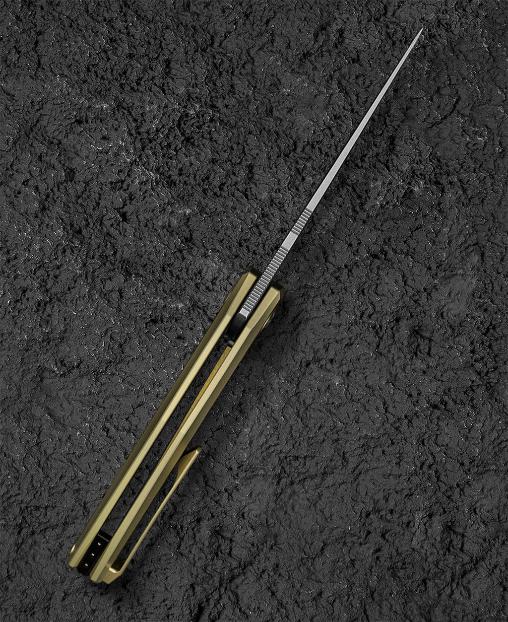 The Bestech Sambac BT2402A represents a pinnacle of modern folding knife engineering, combining premium materials with meticulous craftsmanship. This frame lock folder features a MagnaCut blade—a cutting-edge steel alloy engineered for exceptional edge retention and corrosion resistance—finished with a sophisticated stonewash and flat satin treatment that enhances both aesthetics and performance. The handle showcases a striking marriage of titanium and fat carbon fiber inlay, delivering a lightweight yet robust platform with superior ergonomics. The gold-anodized titanium frame lock mechanism ensures reliable blade security with smooth, confident deployment. Ceramic ball bearings enable effortless opening and closing action, while the titanium clip and black titanium backspacer underscore the attention to detail throughout. At 8.40 inches open and 4.78 inches closed, this knife balances portability with practical cutting capacity. The 3.62-inch blade, hardened to 62-64 HRC, maintains a keen edge through demanding tasks. Weighing just 126 grams, it won't burden your pocket or pack. Designed by renowned knife artist Ostap Hel, the Sambac exemplifies the convergence of functional design and refined aesthetics—an essential tool for discerning EDC enthusiasts.