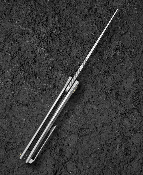 The Bestech Sambac BT2402C represents a pinnacle of modern folding knife engineering, combining cutting-edge materials with refined craftsmanship. At its core lies a MagnaCut blade—a premium steel known for exceptional edge retention and corrosion resistance—finished with a striking stonewash and flat satin treatment that balances aesthetics with practical durability. The handle showcases a sophisticated marriage of materials: aerospace-grade titanium with bead blast finish paired with marble carbon fiber inlays, creating a lightweight yet robust platform. The frame lock mechanism ensures secure blade deployment and reliable one-handed operation. Measuring 8.40 inches when open and 4.78 inches closed, this knife strikes an ideal balance between capability and portability, with a 3.62-inch blade optimized for precision cutting tasks. Engineering excellence extends throughout: a 0.150-inch blade thickness hardened to 62-64 HRC provides the sweet spot between edge sharpness and impact resistance. Ceramic ball bearings enable smooth, effortless deployment, while the titanium clip and black titanium backspacer underscore the attention to detail. At just 126 grams, the Sambac delivers substantial capability without unnecessary weight. Designed by renowned knife artist Ostap Hel, this is a premium EDC tool for discerning users who demand performance and aesthetics in equal measure.