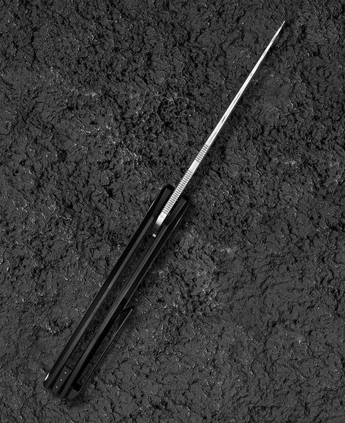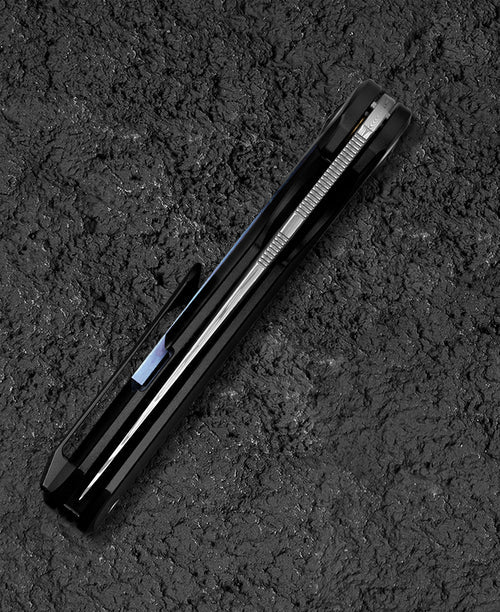 The Bestech Sambac BT2402F represents a pinnacle of modern folding knife engineering, combining Damascus aesthetics with premium materials and precision craftsmanship. This frame lock design features a stunning Damasteel blade with mirrored and flat satin finishes, delivering both visual appeal and functional edge geometry. The handle showcases a sophisticated blend of titanium and Timascus inlay, creating a lightweight yet robust platform that resists corrosion and wear. At 8.40 inches fully extended and 4.78 inches closed, the knife balances portability with practical cutting capacity. The 3.62-inch blade, hardened to 60HRC, maintains excellent edge retention while remaining responsive to sharpening. Ceramic ball bearings ensure smooth, reliable deployment, while the titanium clip and black titanium backspacer provide durability and refined aesthetics. Weighing just 4.94 ounces, this knife excels as both an EDC tool and a collector's piece. Designed by Ostap Hel, the Sambac exemplifies meticulous attention to detail and material selection for discerning knife enthusiasts.