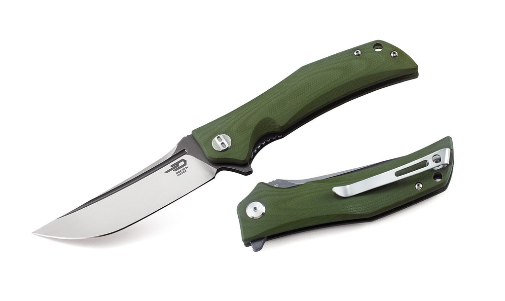 The Bestech Scimitar BG05B-2 represents a refined approach to mid-size folding knife design, engineered for users who demand both performance and reliability. Built around a D2 steel blade with a sophisticated gray and satin finish, this knife delivers excellent edge retention and corrosion resistance suitable for demanding cutting tasks. The blade measures 3.5 inches with a substantial 0.138-inch thickness, providing structural integrity without excessive weight. The handle construction utilizes army green G10, a premium composite material prized for its durability, ergonomic grip, and resistance to environmental degradation. The liner lock mechanism ensures secure blade deployment and safe handling during extended use. Ceramic ball bearings enable smooth, consistent blade action with minimal friction, contributing to the knife's overall operational efficiency. At 121 grams with an overall length of 8.23 inches when open and 4.72 inches when closed, the Scimitar strikes an ideal balance between capability and portability. The steel clip facilitates convenient carry options while maintaining a professional aesthetic. Designed by BESTECH, this knife reflects meticulous attention to detail and functional excellence, making it an excellent choice for outdoor enthusiasts, professionals, and serious collectors seeking a dependable everyday carry or tactical tool.