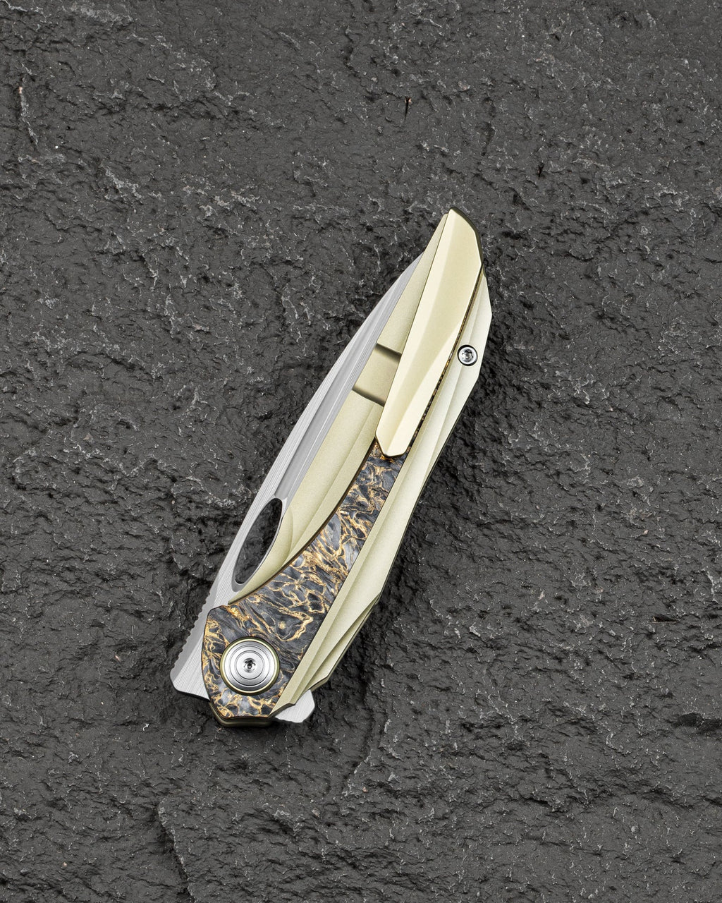The Bestech SENU BT2601C represents a pinnacle of precision engineering for discerning knife enthusiasts. Crafted by renowned designer Grzegorz Grabarski, this folding knife combines cutting-edge materials with meticulous construction. The blade features CPM-S90V steel—a premium powder metallurgy alloy renowned for exceptional edge retention and corrosion resistance—finished with a horizontal satin hand polish that enhances both aesthetics and performance. The titanium handle with Fat Carbon inlay delivers a sophisticated bronze aesthetic while maintaining lightweight durability at just 108 grams. A ceramic ball bearing pivot ensures smooth, reliable deployment, while the frame lock mechanism provides secure blade stability during use. The 3.48-inch blade length and 7.96-inch overall length make this knife versatile for everyday carry and tactical applications. Every component—from the titanium clip to the bead-blasted stainless steel pivot—reflects uncompromising attention to detail. This is a professional-grade instrument for those who demand the finest in blade technology and craftsmanship.