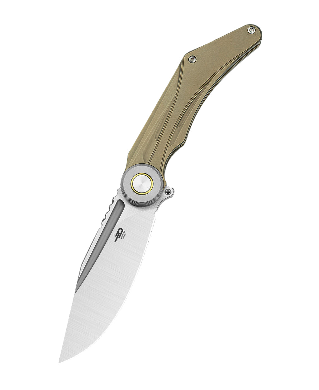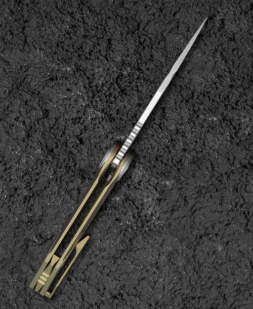 The Bestech Seraph BT2403B represents a pinnacle of modern folding knife engineering, combining premium materials with meticulous craftsmanship. Built around an M390 stainless steel blade with a satin finish and flat grind, this knife delivers exceptional edge retention and corrosion resistance—ideal for demanding cutting tasks. The blade, measuring 3.66 inches with a robust 0.150-inch thickness, is hardened to 60-62 HRC for superior durability and edge performance. The titanium frame lock handle provides lightweight strength and reliability, while the bronze-colored titanium construction ensures both aesthetic appeal and functional excellence. At 8.31 inches overall length and just 119.6 grams, the Seraph balances substantial cutting capability with everyday portability. Premium details include a titanium clip for secure carry, titanium backspacer for refined construction, and ceramic ball bearings enabling smooth, responsive blade deployment. Designed by renowned knife designer Kombou, this folding knife exemplifies precision engineering for serious collectors and professionals who demand uncompromising quality and performance.