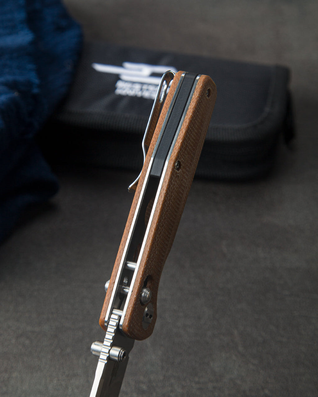The Bestech Slasher BG43D represents a refined approach to everyday carry design, combining premium materials with thoughtful engineering. This folding knife features a D2 steel blade with a satin finish that balances edge retention with corrosion resistance—ideal for users who demand reliable cutting performance in varied conditions. The Micarta handle provides exceptional grip security and durability, while the crossbar lock mechanism ensures blade stability during use with a satisfying, positive engagement. Ceramic ball bearings enable smooth, controlled deployment and retraction, reducing friction and extending the knife's operational lifespan. At 7.1 inches fully extended and just over 4 inches closed, the Slasher strikes an optimal balance between reach and pocket-friendly proportions. The 3.07-inch blade length accommodates most cutting tasks without excessive bulk, while the 0.126-inch blade thickness maintains structural integrity for sustained use. Weighing only 99.3 grams, this knife minimizes fatigue during extended carry. Designed by Bestech, the Slasher BG43D appeals to discerning knife enthusiasts and professionals who value precision engineering and material quality in their tools.