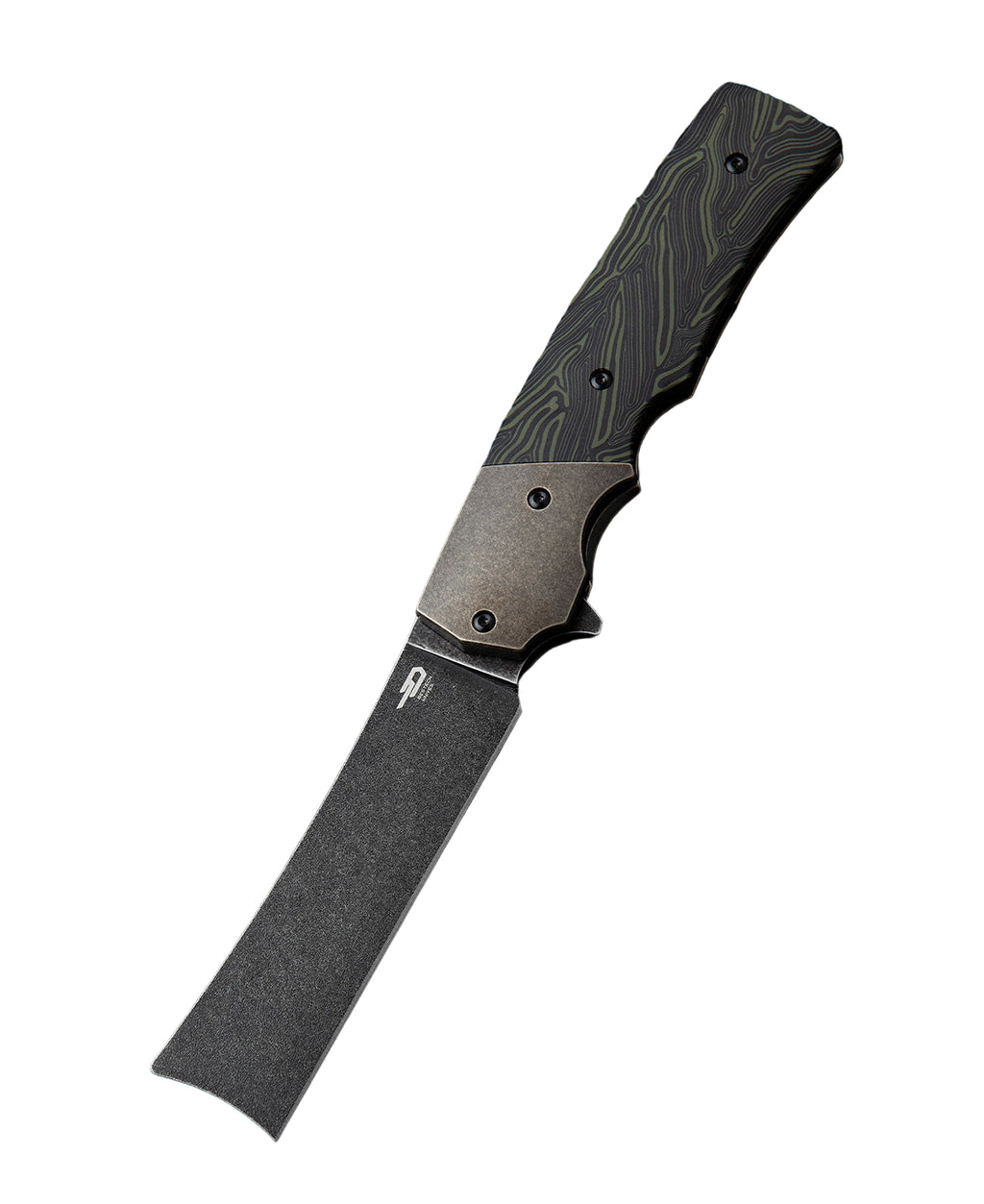 The Bestech Spanish Tip Razor BT2101E represents a masterclass in precision engineering and refined blade design. Featuring a premium M390 stainless steel blade with black PVD etching and stonewash finish, this knife delivers exceptional edge retention and corrosion resistance—ideal for demanding cutting tasks. The blade's distinctive Spanish tip profile combines aesthetic appeal with practical functionality, offering superior control and versatility. The handle construction pairs aerospace-grade titanium with black-green G10 scales, creating a lightweight yet robust platform that resists wear and environmental degradation. The frame lock mechanism ensures reliable blade security during extended use while maintaining smooth deployment. Ceramic ball bearings enable effortless opening and closing with minimal friction. At 8.74 inches overall length with a 3.79-inch blade, this knife strikes an optimal balance between reach and portability. The 136-gram weight distribution ensures comfortable carry without fatigue. Designed by renowned knife craftsman Jason Clark, this folder exemplifies the intersection of form and function, making it an excellent choice for collectors and professionals who demand uncompromising quality and performance.