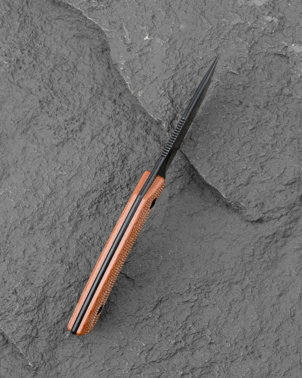 The Bestech Step BFK06D represents a refined approach to fixed blade design, engineered by renowned designer Denis Simonutti. Built around a D2 steel blade finished in black stonewash, this knife delivers a balance of edge retention and corrosion resistance suitable for demanding field work. The blade measures 3.193 inches with a substantial 0.138-inch spine, providing structural integrity without excessive weight at just 99 grams total. The brown Micarta handle offers superior grip security in varied conditions, with ergonomic proportions spanning 4.027 inches that accommodate diverse hand sizes. At 7.220 inches overall length, the Step achieves practical carry dimensions while maintaining functional blade presence. The included Kydex sheath ensures reliable retention and rapid deployment, making this fixed blade equally at home in professional, tactical, or outdoor applications. A purposeful tool for those who demand precision and dependability.