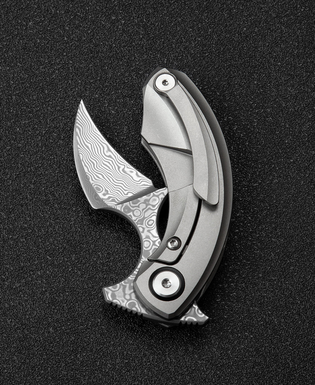 The Bestech Strelit BT2103G represents a masterclass in compact folding knife design, engineered for discerning users who demand both performance and refinement. Crafted by renowned designer Ostap Hel, this knife features a hand-forged Damascus blade that delivers exceptional edge retention and distinctive visual appeal with its intricate pattern work. The blade's precise 0.138" thickness strikes an optimal balance between cutting efficiency and durability, while the titanium handle construction ensures lightweight portability without compromising structural integrity. The frame lock mechanism provides secure blade engagement during use, a proven design favored by professionals and enthusiasts alike. Measuring just 3.01" when closed and 3.46" fully extended, the Strelit excels as an everyday carry option that fits seamlessly into pocket or pack. At a mere 53 grams, it minimizes fatigue during extended use. The ceramic ball bearing pivot enables smooth, responsive deployment with minimal resistance. The grey titanium finish resists corrosion and maintains its aesthetic appeal through years of regular use. Whether you're a collector appreciating fine craftsmanship or a field professional requiring reliable cutting performance, the Strelit delivers precision engineering in an elegantly proportioned package.