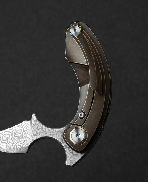 The Bestech Strelit BT2103J represents a masterclass in precision engineering and refined aesthetics. Crafted by designer Ostap Hel, this folding knife features a stunning Damascus blade that showcases intricate layered patterns, delivering both visual appeal and exceptional edge retention. The titanium handle with bronze stonewash finish provides a lightweight yet robust frame, while the frame lock mechanism ensures secure blade deployment and reliable one-handed operation. At just 53 grams, this knife achieves an impressive balance between durability and portability. The ceramic ball bearing system enables smooth, effortless opening with minimal resistance. With a closed length of 3.01 inches and blade length of 2.19 inches, the Strelit offers practical versatility for everyday carry and tactical applications. The 0.138-inch blade thickness provides optimal strength-to-weight ratio, while the overall 3.46-inch length makes it compact enough for pocket carry without sacrificing cutting performance. An essential addition to any serious knife enthusiast's collection.