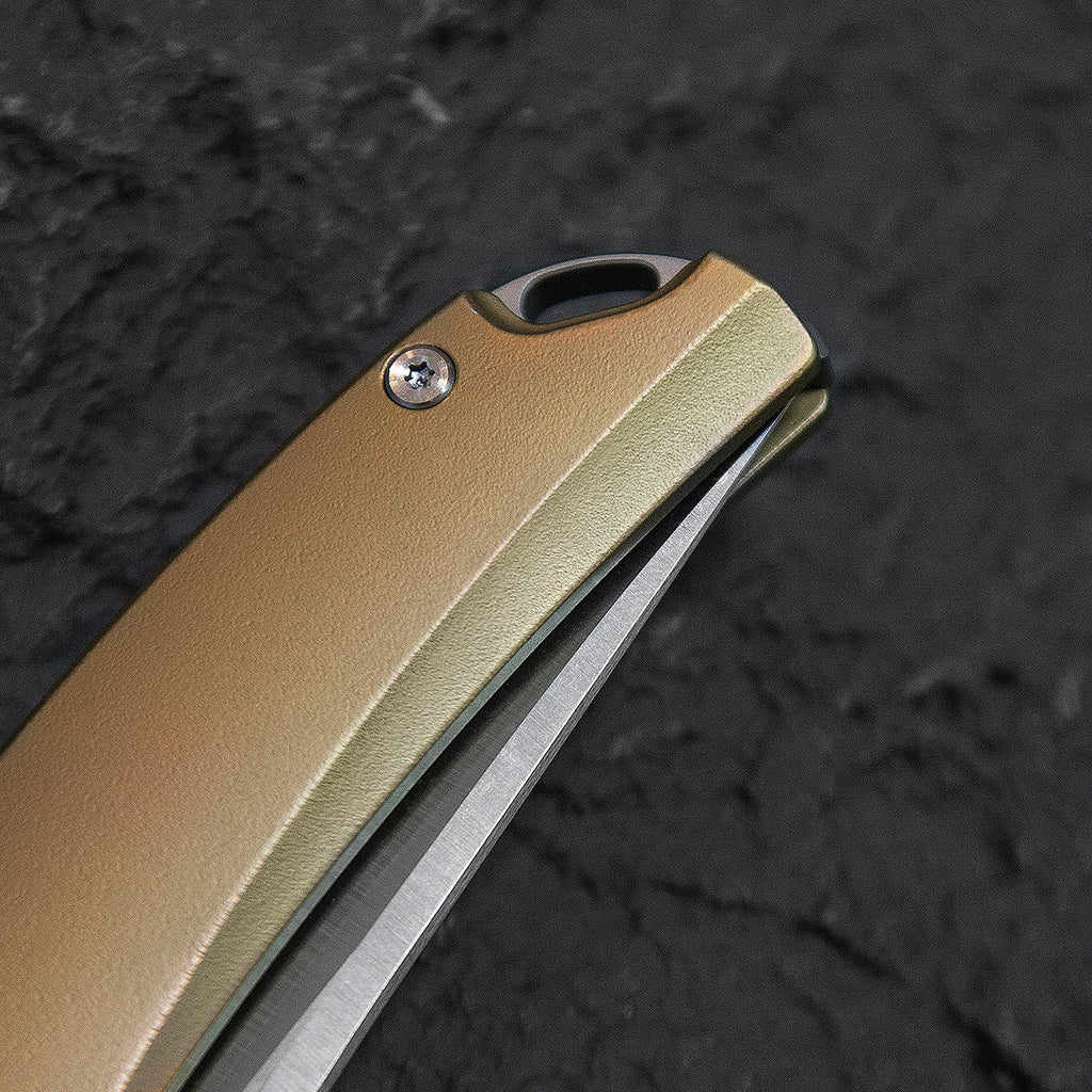 The Bestech Supernova BT2111B represents a pinnacle of modern folding knife engineering, combining premium materials with meticulous craftsmanship. Featuring a razor-sharp M390 stainless steel blade with a refined satin and flat satin finish, this knife delivers exceptional edge retention and corrosion resistance—ideal for demanding cutting tasks. The handle showcases a sophisticated titanium construction with zirconium bolster accents, finished in striking black and gold tones that balance aesthetics with durability. Equipped with a reliable liner lock mechanism, the blade locks securely during use while remaining effortlessly deployable. Ceramic ball bearings ensure smooth, consistent opening action with minimal friction. At just 94 grams, this knife achieves an impressive strength-to-weight ratio, making it equally suited for everyday carry or professional applications. With a closed length of 4.02 inches and extended blade length of 3.07 inches, the Supernova delivers versatile functionality in a compact, pocket-friendly package. Designed by BESTECH, this folding knife exemplifies precision engineering for discerning users who demand both performance and refined aesthetics.