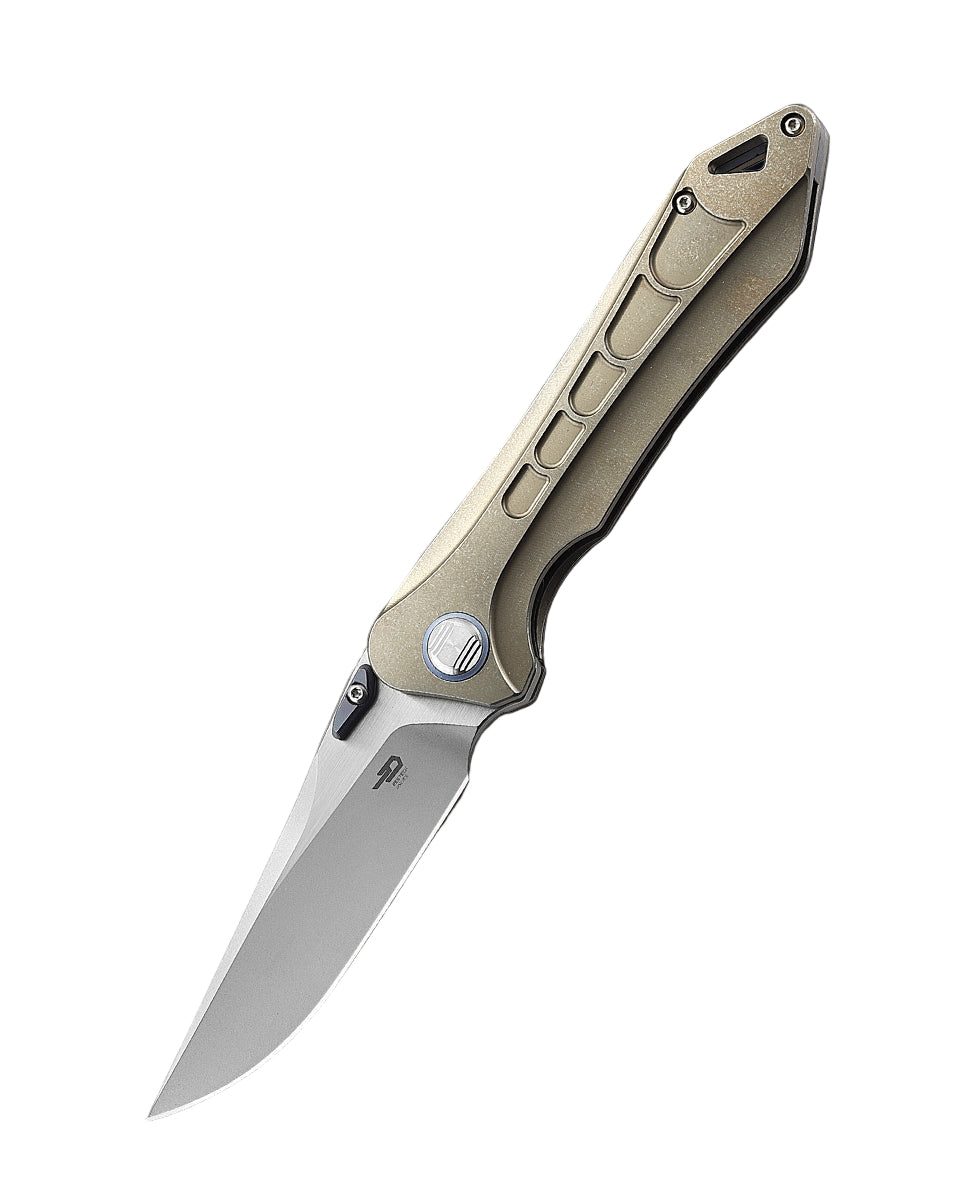 The Bestech Supersonic BT1908C represents a pinnacle of modern folding knife engineering, combining premium materials with meticulous craftsmanship. Built around a CPM-S35VN blade—renowned for exceptional edge retention, corrosion resistance, and ease of maintenance—this knife delivers reliable cutting performance across demanding applications. The blade features a refined fine stonewash and flat satin finish that balances aesthetics with practical wear concealment. The titanium frame lock construction provides robust security and durability, while the ceramic ball bearing flipper mechanism ensures smooth, responsive deployment. Finished in an elegant gold tone, the titanium handle offers lightweight strength without compromising rigidity. At 116 grams, this knife achieves an optimal balance between substance and portability, making it equally suited for everyday carry or specialized tasks. Designed by Bestech, the Supersonic BT1908C measures 8.3 inches open and 4.92 inches closed, with a 3.39-inch blade and 3.8mm blade stock. This geometry provides excellent cutting geometry while maintaining a compact profile. Whether you're a collector, professional, or serious enthusiast, this knife exemplifies precision tool design and premium material selection.