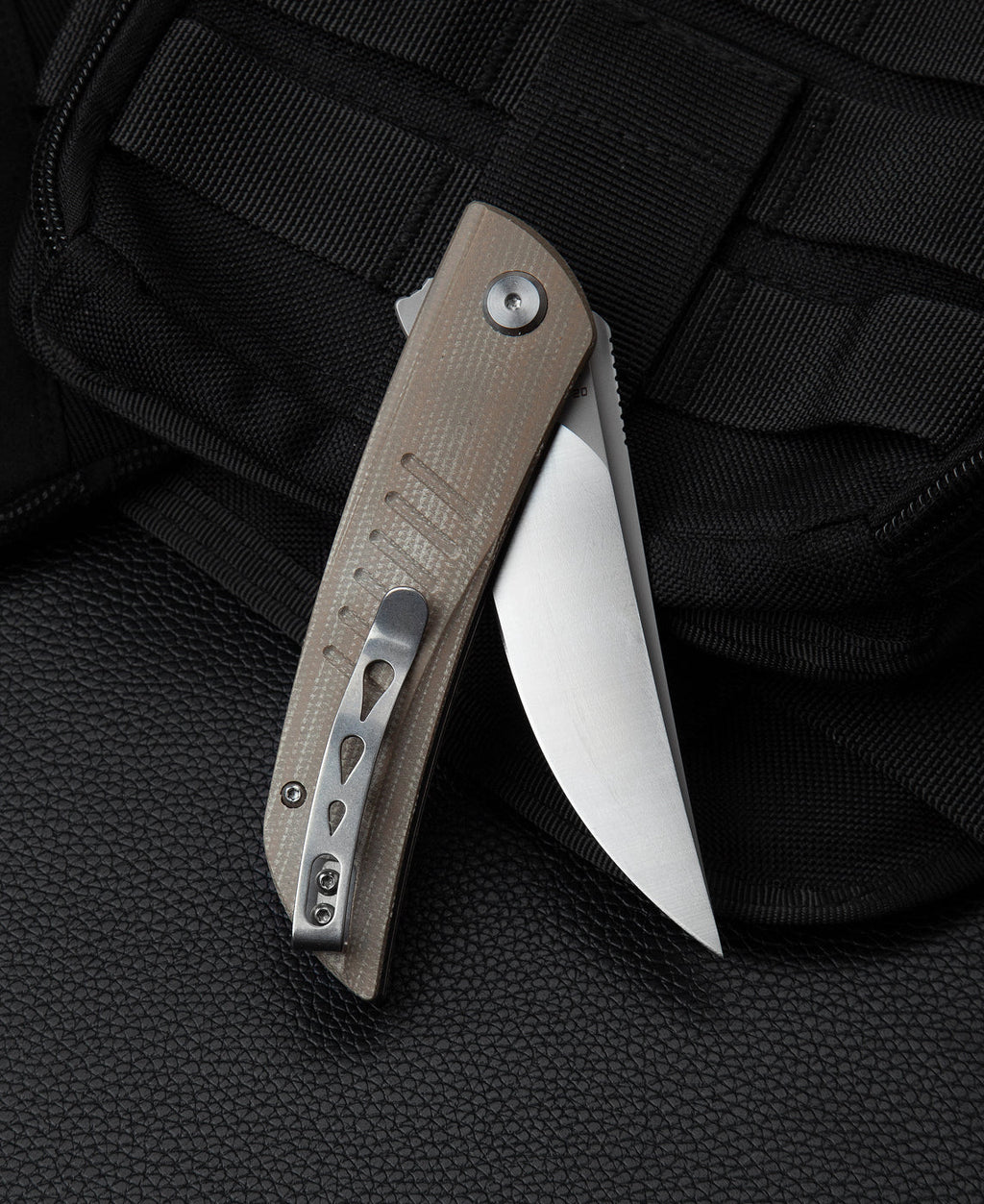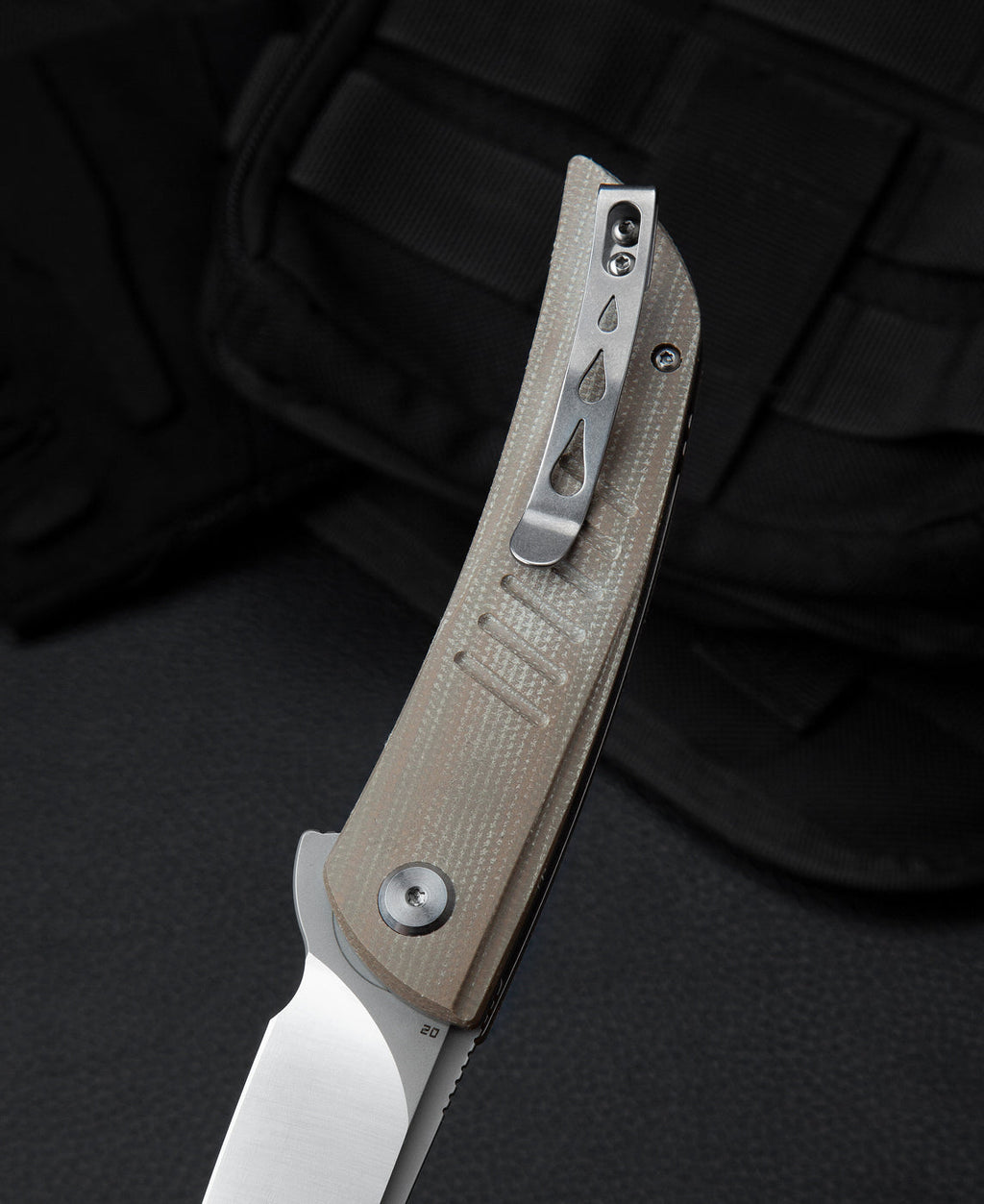 The Bestech Swift BG30C-1 represents a refined approach to everyday carry design, engineered for those who demand both performance and precision. Built around a D2 steel blade with a satin finish, this knife delivers exceptional edge retention and corrosion resistance—ideal for sustained cutting tasks. The blade measures 3.54 inches with a robust 0.15-inch thickness, providing the structural integrity needed for demanding applications while maintaining maneuverability. The handle construction showcases beige Micarta, a material prized in professional circles for its superior grip characteristics and durability across varying conditions. The liner lock mechanism ensures reliable blade security with minimal play, while ceramic ball bearings enable smooth, controlled deployment. At 8.39 inches fully extended and 4.84 inches closed, the Swift strikes an optimal balance between reach and pocket-friendly proportions. Weighing just 122 grams, it won't burden your EDC rotation. The steel clip provides secure retention while maintaining the knife's refined aesthetic. Designed by Bestech, this folder exemplifies thoughtful engineering for discerning users who prioritize quality and functionality.