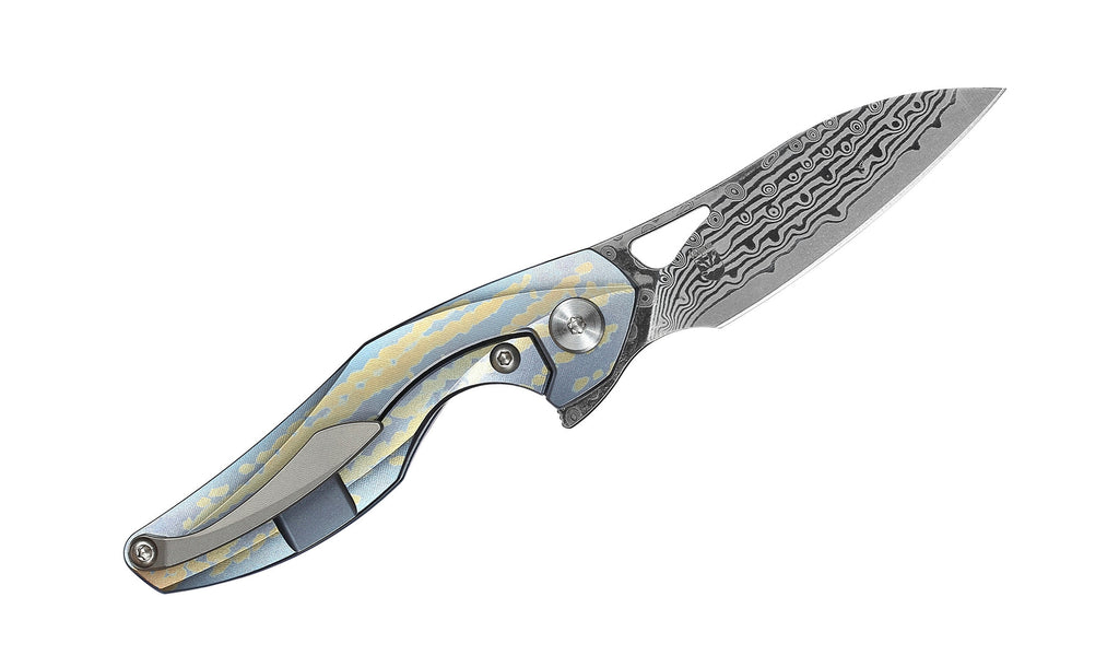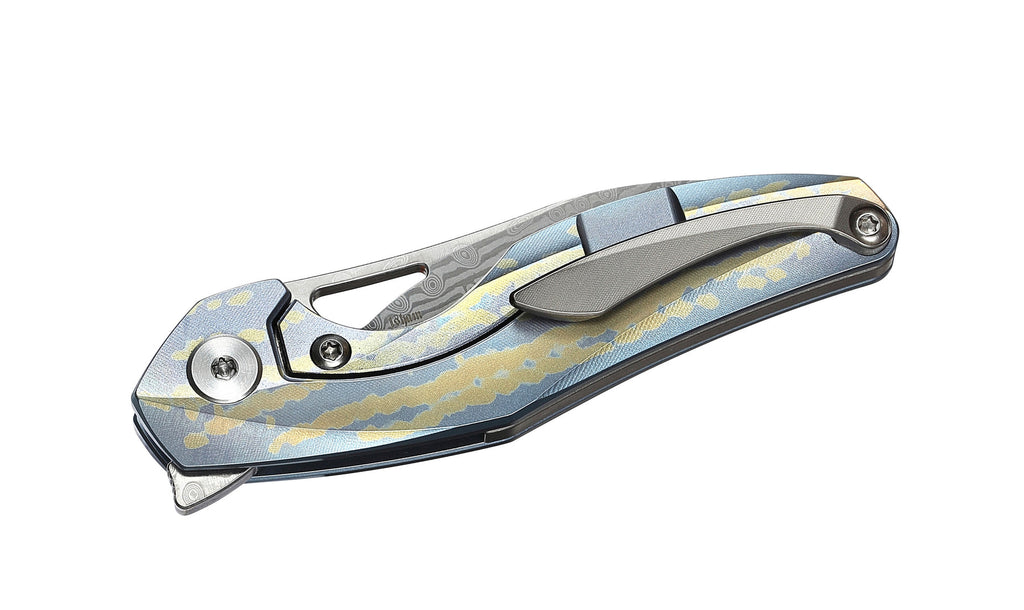 The Bestech Reticulan BT1810L represents a masterclass in compact folding knife design, combining premium materials with refined engineering. Crafted by designer Elijah Isham, this knife features a hand-forged Damascus blade that delivers exceptional edge retention and visual appeal through its distinctive layered pattern. The titanium frame lock mechanism ensures reliable blade security while maintaining the knife's lightweight profile at just 35 grams. The blue and colorful titanium handle provides both aesthetic distinction and practical durability, while ceramic ball bearings enable smooth, responsive deployment. At 5.0 inches open and 2.91 inches closed, the Reticulan fits seamlessly into pocket or pack without sacrificing cutting capability. The 2.09-inch blade with 0.10-inch stock thickness strikes an ideal balance between slicing performance and maneuverability, making it equally suited for everyday carry, outdoor tasks, or collection appreciation. This is a knife built for those who demand quality in every detail.