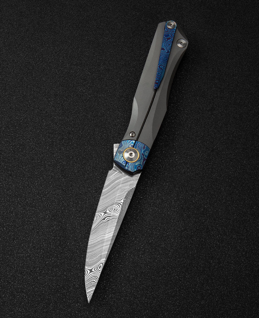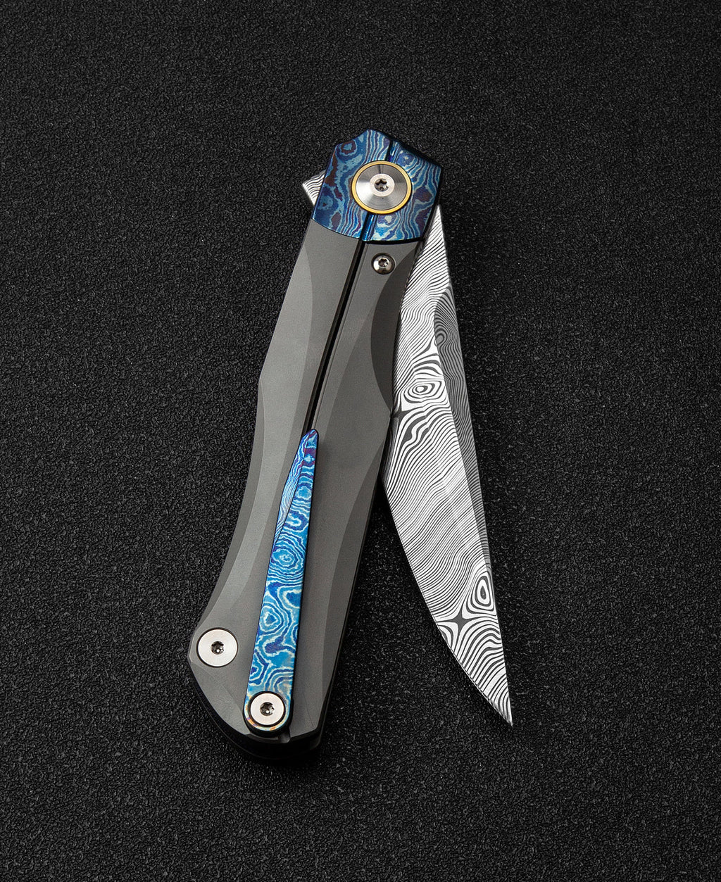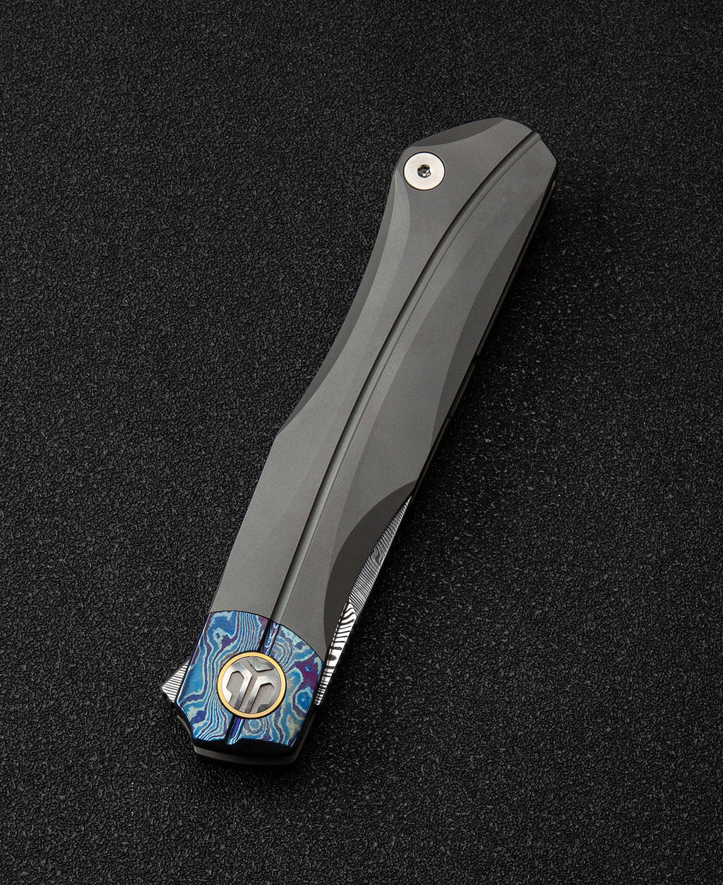 The Bestech Thyra BT2106G represents a pinnacle of modern folding knife engineering, combining Damascus steel craftsmanship with premium materials. The blade features authentic Damasteel construction, renowned for its distinctive patterns and exceptional edge retention. The handle showcases a sophisticated titanium frame paired with Timascus inlay accents, delivering both aesthetic refinement and lightweight durability. The frame lock mechanism provides secure blade engagement during use while maintaining smooth deployment. Measuring 8.3 inches when open and 4.74 inches closed, this knife balances portability with functional blade length of 3.56 inches. At just 117 grams, it remains comfortable for extended carry. Ceramic ball bearings ensure fluid, responsive action with minimal friction. The dark grey finish adds understated elegance to the premium construction. Designed by KOMBOU, this knife appeals to collectors and users who demand superior materials and meticulous attention to detail in their everyday carry or collection piece.