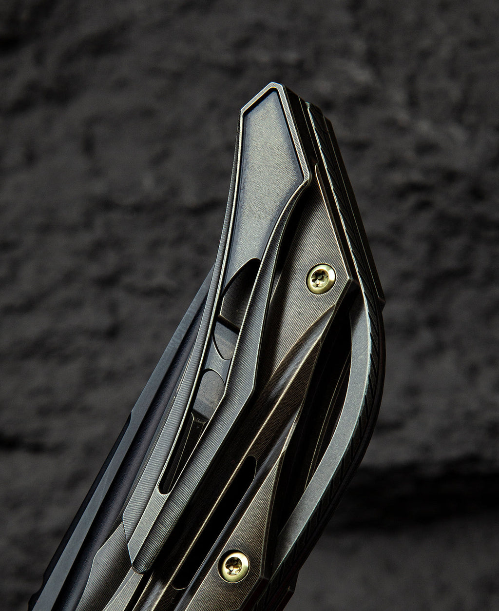 The Bestech Vigil BT2201D represents a refined approach to everyday carry design, engineered for those who demand both performance and aesthetics. Built around an M390 stainless steel blade with a striking black stonewash finish, this knife delivers exceptional edge retention and corrosion resistance—ideal for extended use in demanding environments. The blade measures 3.27 inches with a precise 0.15-inch thickness, balancing cutting efficiency with structural integrity. The titanium handle features a bronze anodized finish that develops character over time, while the frame lock mechanism provides secure blade engagement with minimal play. Ceramic ball bearings ensure smooth, responsive deployment and reliable closure. At 117 grams with a closed length of 4.53 inches, the Vigil achieves excellent portability without sacrificing capability. The 7.8-inch overall length provides substantial reach when deployed. Designed by KOMBOU, this knife combines premium materials with thoughtful engineering, making it a versatile tool for professionals, outdoor enthusiasts, and discerning collectors who appreciate quality craftsmanship.