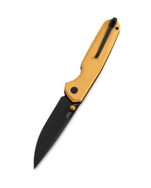 The Bestechman Velix BMK07E represents a thoughtfully engineered folding knife designed for discerning users who demand precision and reliability. Featuring a 3.315" blade crafted from 14C28N steel—a Scandinavian stainless steel known for excellent edge retention and corrosion resistance—this knife delivers exceptional cutting performance across diverse tasks. The black PVD finish provides both aesthetic appeal and enhanced durability against wear and oxidation. The ergonomic design balances portability with control, combining a 4.441" handle with an overall length of 7.756" to create a compact yet functional tool. The yellow G10 handle material offers superior grip security in various conditions while maintaining lightweight construction at just 2.89 ounces. The button lock mechanism ensures reliable blade security during use, providing confident deployment and safe handling. Designed by Ostap Hel, this knife incorporates a deep-carry pocket clip that accommodates both left and right-handed carry preferences, making it adaptable to individual preferences. The 0.126" blade thickness strikes an optimal balance between cutting efficiency and structural integrity. Whether for everyday carry, outdoor activities, or professional use, the Velix BMK07E delivers the performance and versatility expected from quality cutlery.