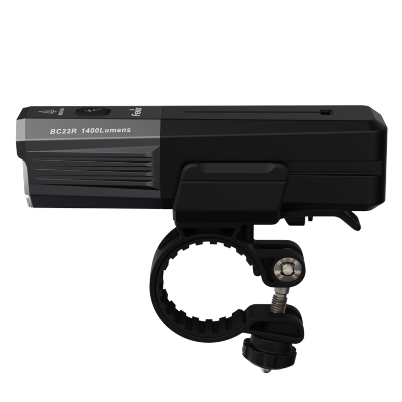 The Fenix BC22R High-Performance Road Bike Light delivers a powerful 1400-lumen output with a broad 512-foot flood beam, ensuring clear visibility while its anti-glare cut-off line protects pedestrians and oncoming traffic for your safety and theirs. Compact and aerodynamically designed, it mounts easily on the top or bottom of handlebars with a quick-release system for effortless use.