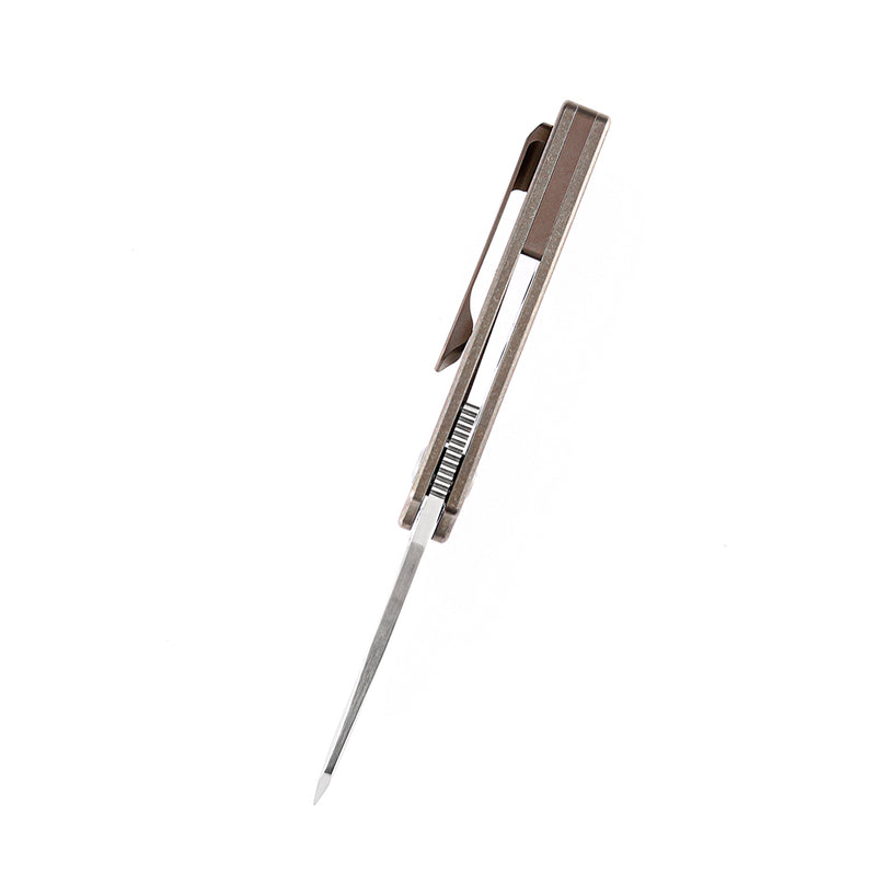 The Kansept Goblin K2016A6 represents a masterclass in compact knife design, engineered by renowned designer Marshall Noble who has been perfecting his craft since 2002. Inspired by the legendary 1984 US Airforce XF-85 Goblin fighter jet, this folding knife delivers maximum capability in a minimalist package—proving that size doesn't limit performance. Featuring a broad 2.18" CPM-S35VN blade with exceptional edge retention and durability, the Goblin handles demanding tasks with ease despite its compact 5.63" overall length. The stonewashed flat-ground wharncliffe blade combines aesthetics with functionality, while the chamfered titanium frame lock handle provides a secure, comfortable grip with distinctive ventilation holes for reduced weight and enhanced pocket carry. Three intuitive opening methods—front flipper tab, finger flick, or traditional thump hole—offer versatility for any situation. Ceramic ball bearings ensure smooth, reliable deployment every time. At just 2.4 ounces, this knife balances substantial cutting power with everyday portability. The stylish pocket clip and gray titanium construction complete a design that transcends mere utility, becoming a refined tool for discerning users who demand both form and function in their everyday carry.