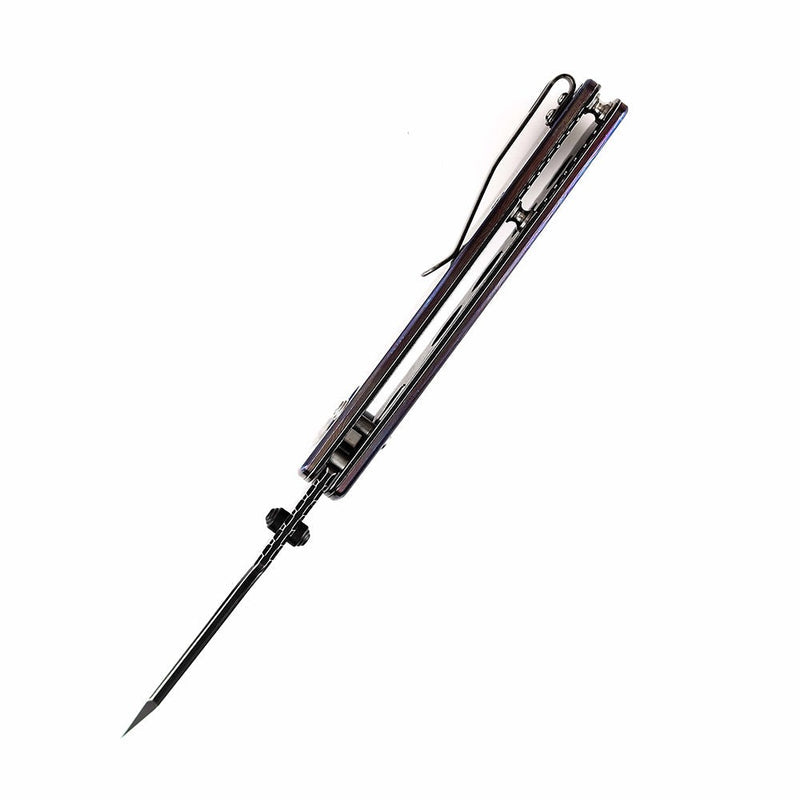 - Ergonomic timascus handle for a smooth gripping surface that is comfortable in the pocket or hand.