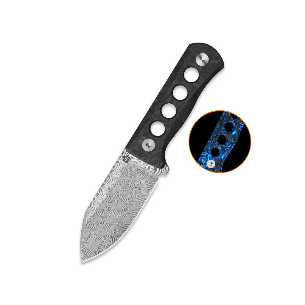 QSP Canary QS141-L Laminated Damascus Blade Glow-in-the-Dark Shredded CF Handle Neck Knife