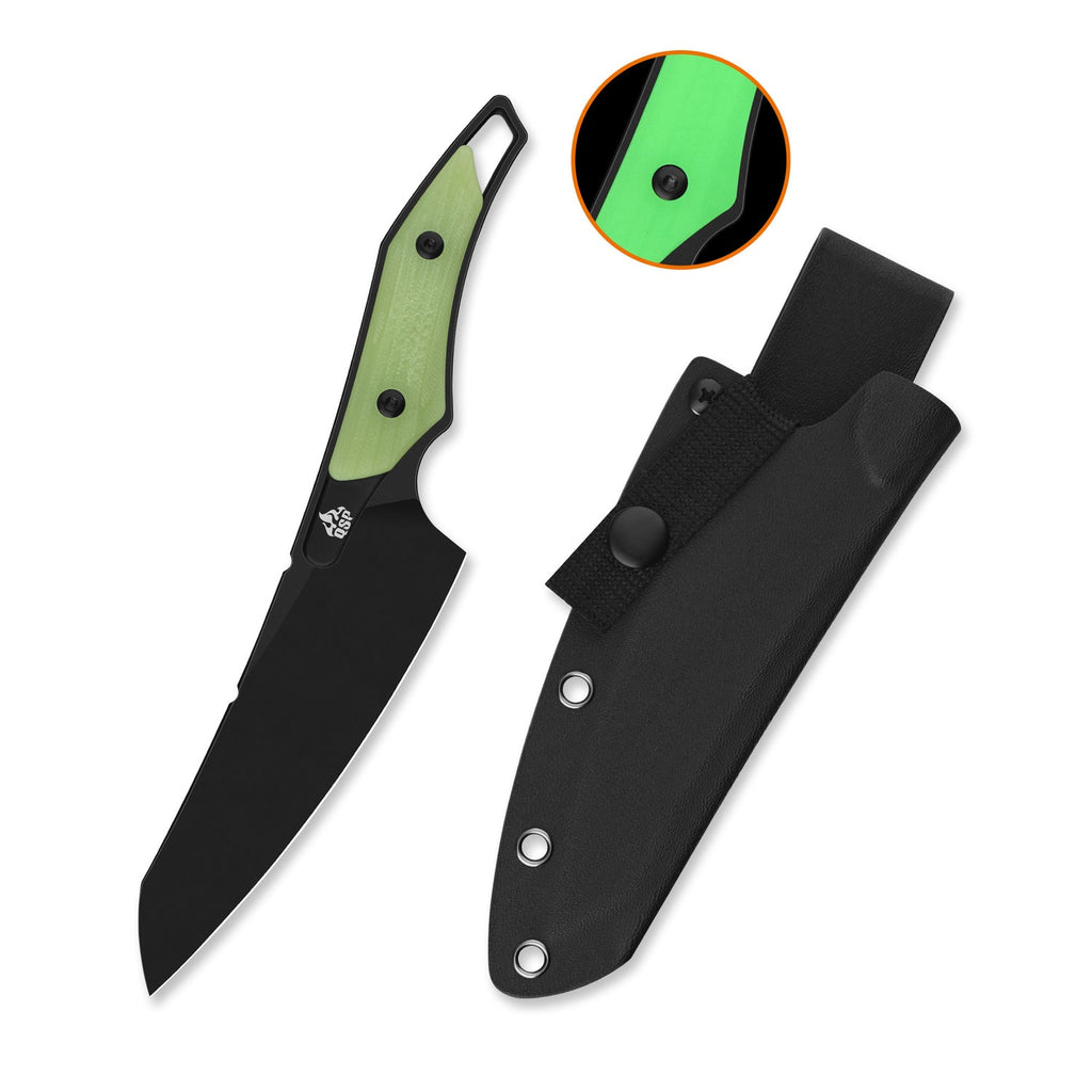 The QSP T-Cook QS172-B2 represents a refined approach to fixed blade knife design, engineered for those who demand precision and reliability. Built around a Nitro-V blade—a premium stainless steel known for exceptional edge retention and corrosion resistance—this knife delivers professional-grade performance in a compact, practical package. The blade features a distinctive Wharncliffe profile, optimizing cutting geometry for controlled slicing and detailed work. At 5.30 inches with a robust 3.0mm thickness, it maintains structural integrity under demanding use while the 59-61 HRC hardness ensures durability without sacrificing edge-taking capability. The glow-in-the-dark G10 handle provides both functional visibility in low-light conditions and secure grip control, while the overall 9.45-inch length balances reach with maneuverability. Weighing just 102 grams, this knife minimizes fatigue during extended use. Designed by respected knife craftsman Maciej Torbé, the T-Cook combines thoughtful ergonomics with functional aesthetics, making it an excellent choice for culinary professionals, outdoor enthusiasts, and serious collectors who appreciate quality blade work.