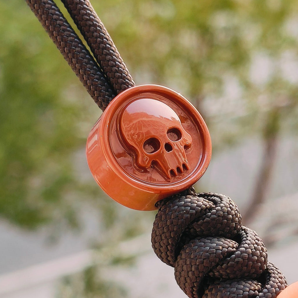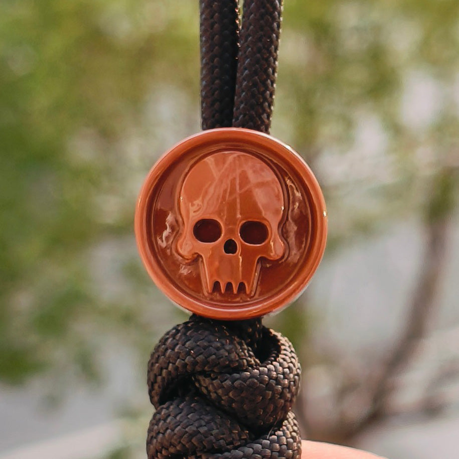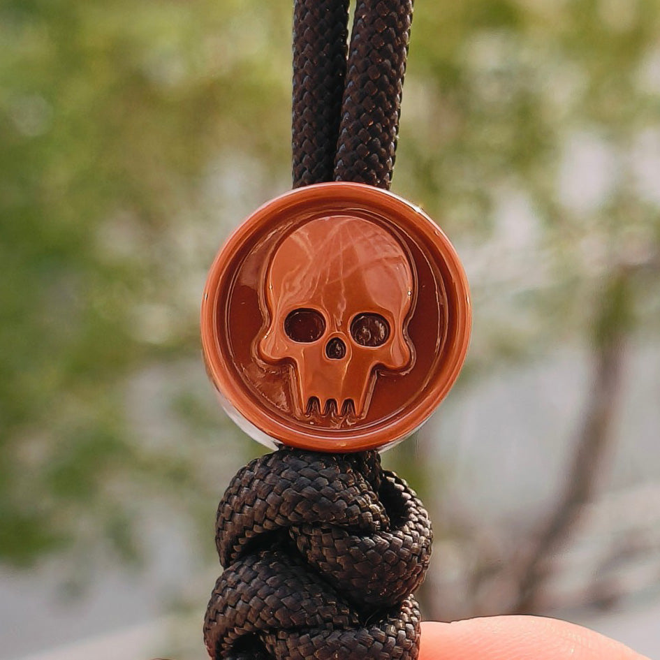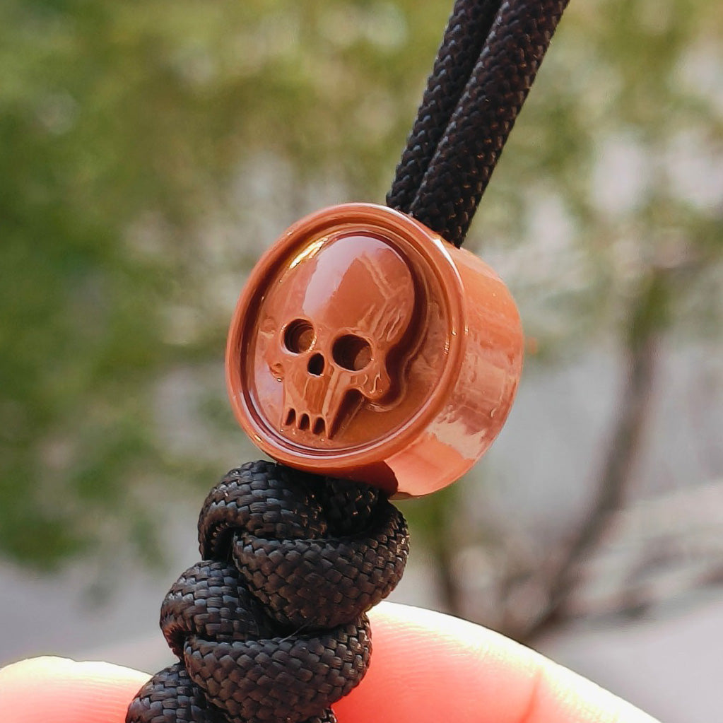 This premium three-piece bead collection presents intricately carved skull knife designs in striking transparent red, constructed from advanced resin formulation. Engineered to deliver outstanding structural integrity without compromising portability, these beads serve as exceptional additions to knife lanyards, paracord assemblies, and tactical gear customization. Each bead exemplifies precision manufacturing with commanding visual impact, crafted for professionals and collectors who demand absolute reliability paired with distinctive character. The reinforced yet ultralight construction guarantees consistent performance in high-stress environments while preserving sophisticated visual presence and professional-caliber aesthetics.