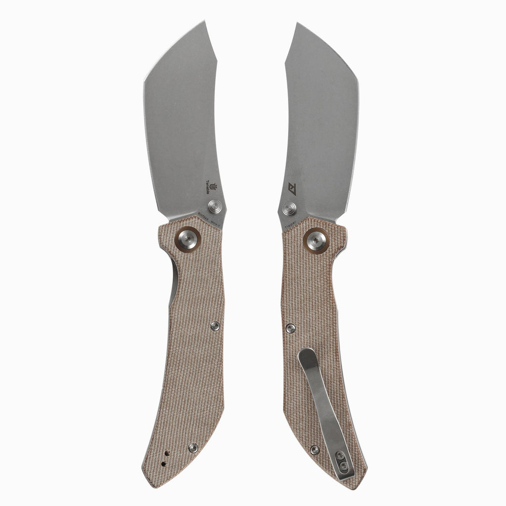 The Tipper features a Modified Cleaver blade crafted from Nitro-V steel for balanced edge retention, toughness, and corrosion resistance, or Damascus steel for a unique pattern while maintaining reliable performance. Its shape maximizes cutting efficiency and utility, making it ideal for EDC, slicing, and outdoor tasks.
