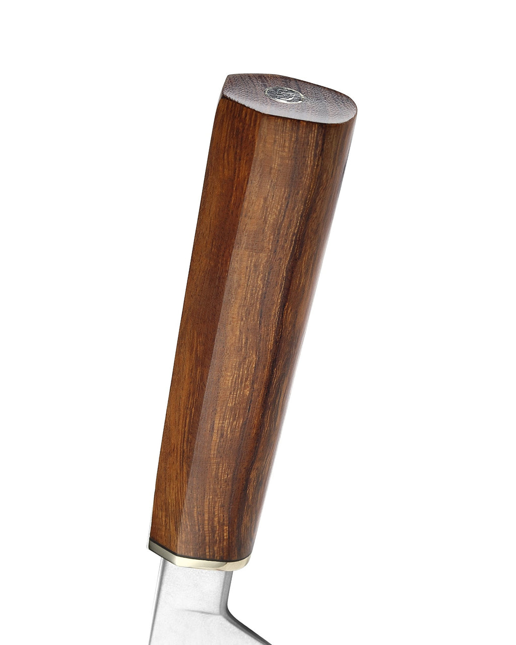 We apply natural ironwood for the handle, and joint with brass spacer. The whole knife body is full tang structure and handy enough to help on flexible cutting tasks.