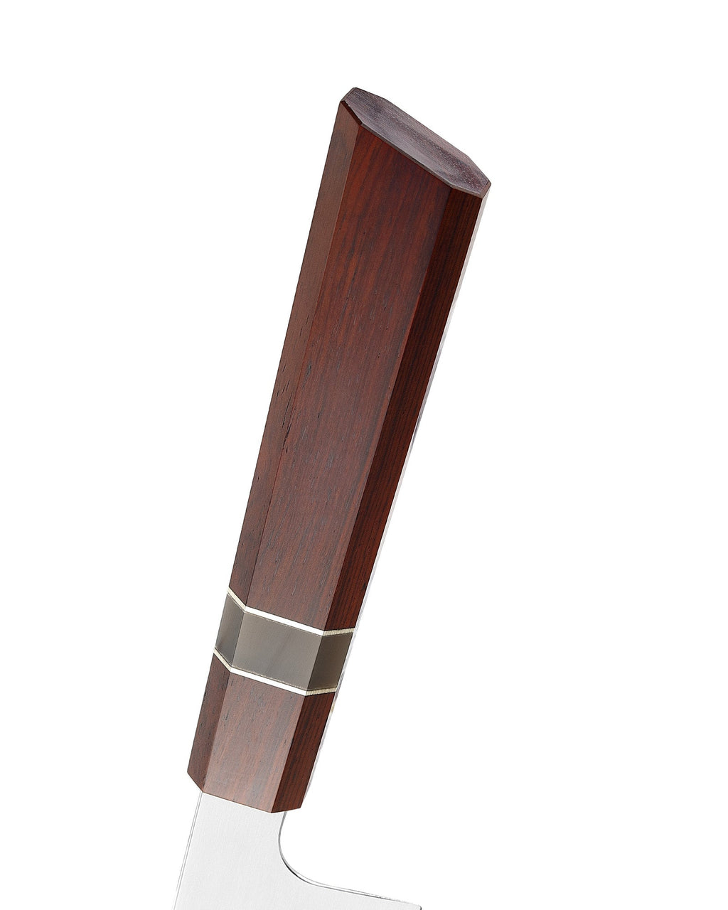 The handle is exclusively designed multangular shape, applying white buffalo horn, rosewood jointed with nickle silver. With the elegant design, the whole body applies a full tang structure to achieve the best balance and longest using durability.