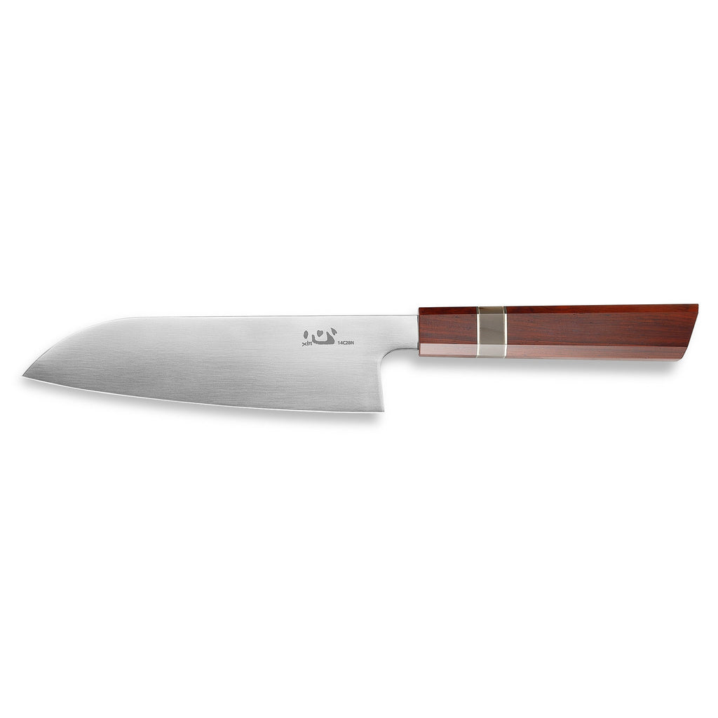 This knife is handcrafted by very experienced craftsmen with decades of experience of knife hand-making. The blade is Sandvik 14C28N steel with hand satin finish. The fine convex grind of the edge forms a nice arcuate shape and an extremely sharp performance.