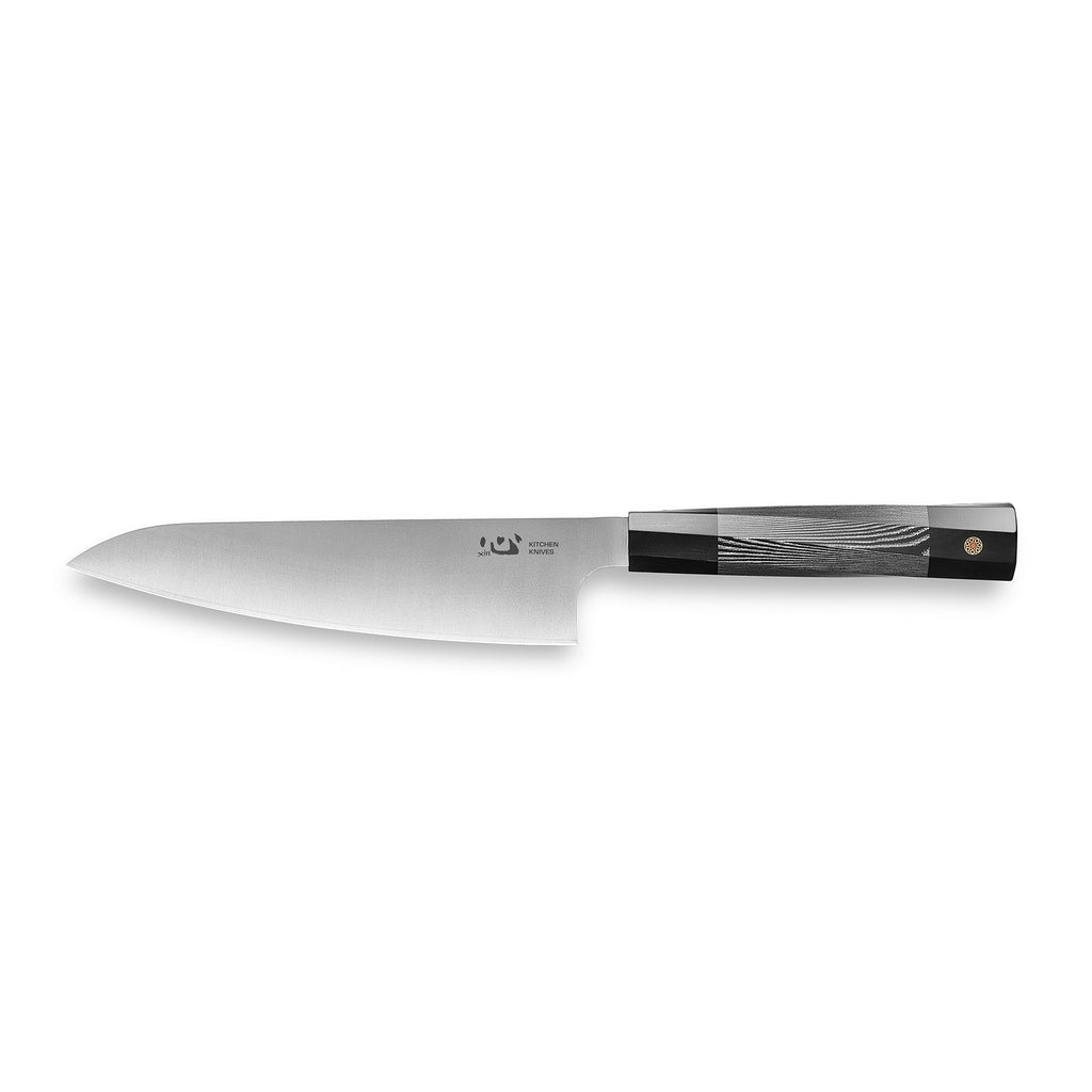 XinCare series Japanese kitchen knives apply food grade 304Cu antibacterial stainless steel for blade, powder alloy steel for cutting edge, high standard G10 for handle. This 7" chef knife maximizes the hardness (HRC 62±1) and sharpness, meanwhile minimizing the risk of being affected by the common pathogenic bacteria. It deserves a try for anyone who cares about cleanliness, sharpness, and comfort experience during cooking.