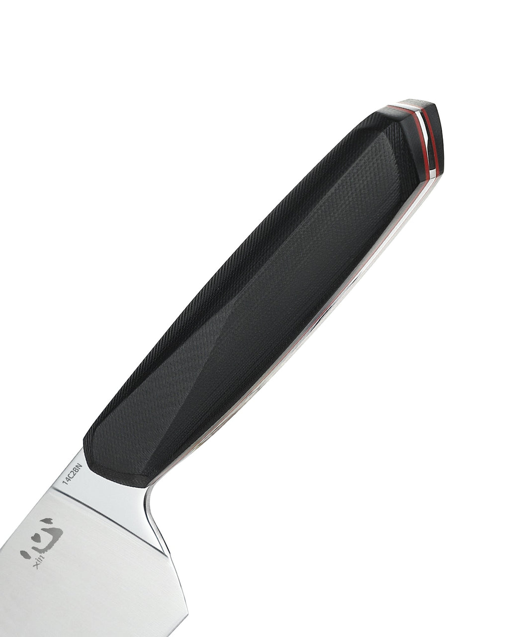 The XinCore series is an innovative artwork from Xin Cutlery team. The unique looking of this series is designed by Polish designer Ostap Hel, who is always committed to delivering a commendable artwork into kitchens. The blade features Sandvik 14C28N vacuum treated steel at 58-59 Rockwell, all finished with hand polished satin. The handle applies fiber-resin G10 with carefully hand polished, and the ergonomic handle shape maximums comfort, grip and maneuverability.
