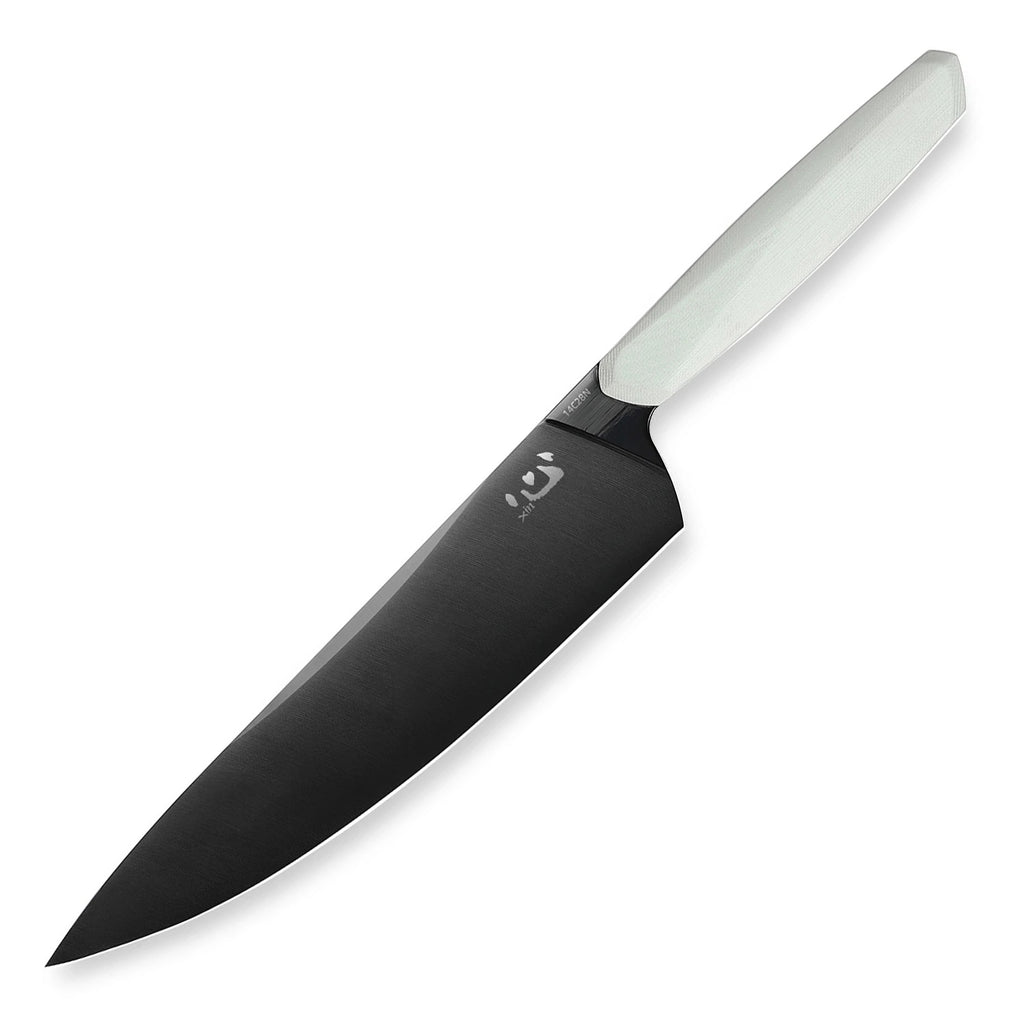 The XinCore series is an innovative artwork from Xin Cutlery team. The unique looking of this series is designed by Polish designer Ostap Hel, who is always committed to delivering a commendable artwork into kitchens. The blade features Sandvik 14C28N vacuum treated steel at 58-59 Rockwell, all finished with hand polished satin. The handle applies fiber-resin G10 with carefully hand polished, and the ergonomic handle shape maximums comfort, grip and maneuverability.