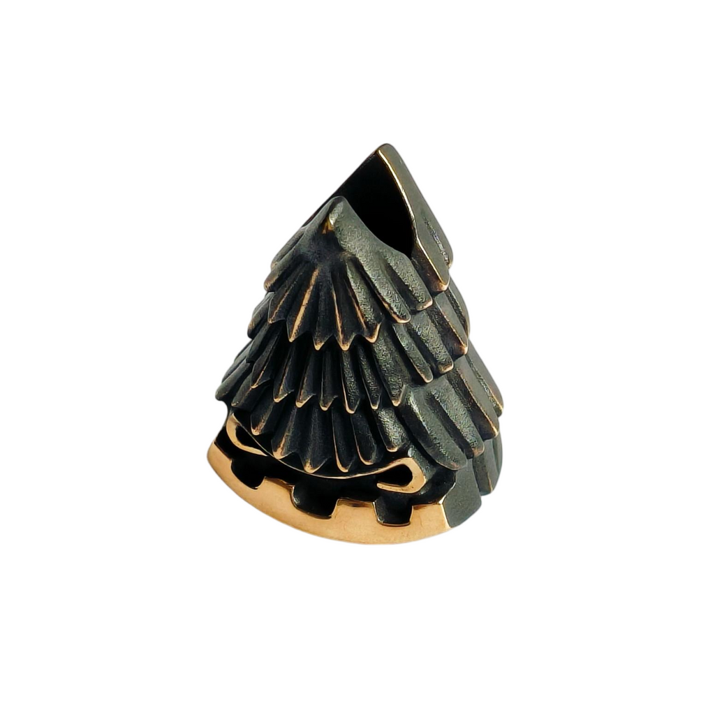 Handcrafted brass bead featuring Alexander Peshkov's distinctive ELKQ Christmas tree design, engineered for EDC enthusiasts and knife collectors. This premium pendant combines functional aesthetics with meticulous metalwork, offering a refined accent for paracord lanyards, knife sheaths, or everyday carry systems. The solid brass construction develops a natural patina over time, enhancing character and durability. Ideal for those who appreciate artisanal craftsmanship and seek to elevate their tactical or outdoor gear with a touch of seasonal elegance and professional design.