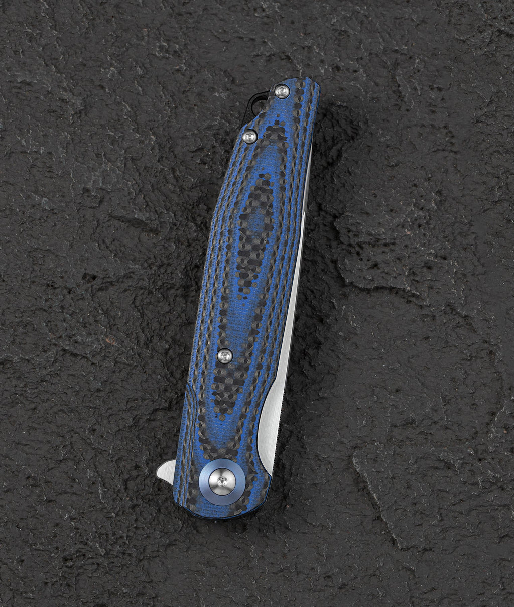 The Bestech Ascot BG19C represents a refined approach to everyday carry design, combining proven materials with thoughtful engineering. Its D2 satin blade delivers reliable edge retention and corrosion resistance, making it suitable for routine cutting tasks. The handle construction merges carbon fiber with G10 layers, creating a lightweight yet durable frame that resists wear while maintaining excellent grip integrity. The steel liner lock mechanism provides secure blade containment during use, while ceramic ball bearings enable smooth, responsive deployment. At 8.74 inches fully extended and just 137 grams, this knife balances presence with portability. The blue handle offers visual distinction without compromising the tool's professional aesthetic. With a 3.82-inch blade and precision tolerances throughout, the Ascot BG19C appeals to users who value consistent performance and understated craftsmanship in their cutting instruments.