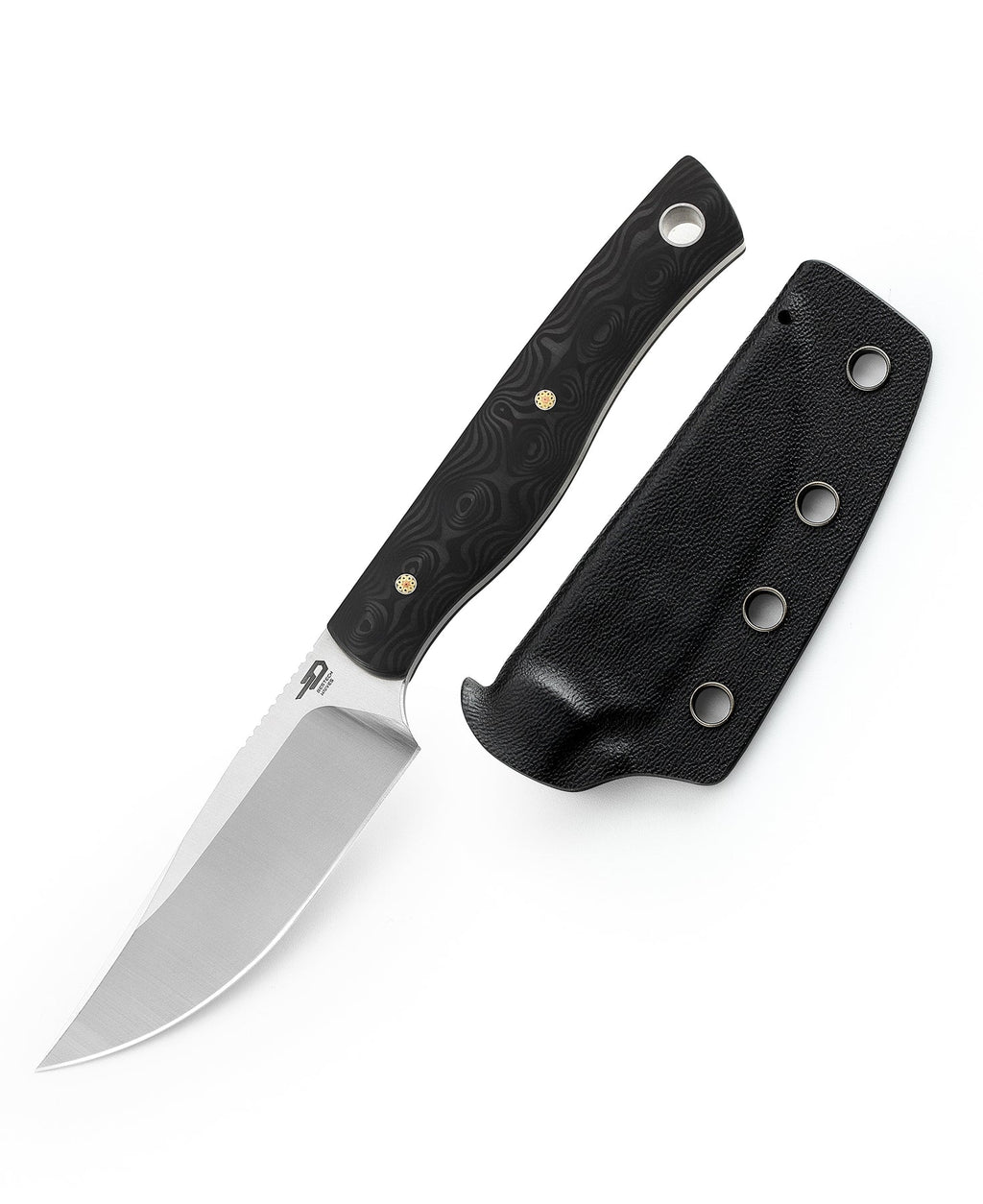 The Bestech HEIDI BLACKSMITH#1 is a precision-engineered fixed blade knife designed for serious enthusiasts and professionals. Featuring a robust D2 steel blade with a refined satin finish, this knife delivers exceptional edge retention and corrosion resistance suitable for demanding cutting tasks. The blade measures 3.15 inches with a substantial 0.122-inch thickness, providing optimal balance between cutting performance and durability. The handle showcases premium carbon fiber construction in classic black, offering superior strength-to-weight ratio and ergonomic comfort during extended use. At just 69 grams, this compact fixed blade measures 6.89 inches overall, making it highly portable without sacrificing functionality. The design philosophy by renowned knife designer Heidi emphasizes practical utility and refined aesthetics. Whether for tactical applications, outdoor work, or collection purposes, this knife combines quality materials with thoughtful engineering to deliver reliable performance in any situation.
