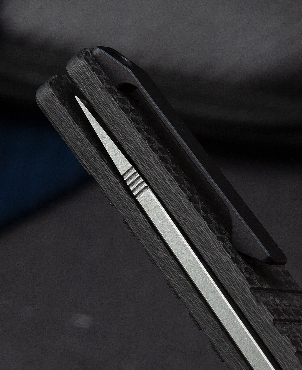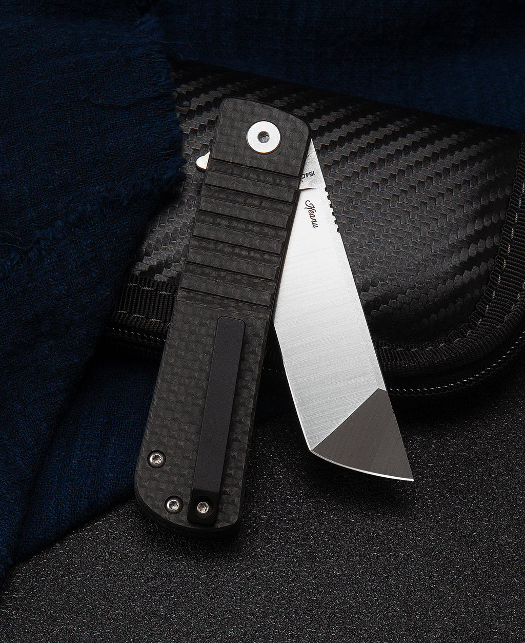 The Bestech Titan BL04A represents a refined approach to compact folding knife design, engineered for those who demand precision and reliability in their everyday carry. Built around a 154CM stainless steel blade with a distinctive stonewash and satin finish, this knife delivers excellent edge retention and corrosion resistance—ideal for sustained cutting performance in varied conditions. The carbon fiber handle provides an optimal balance of lightweight construction and durability, while the titanium clip ensures secure pocket carry without adding unnecessary weight. At just 67 grams, the Titan remains unobtrusive yet substantial in hand. The ceramic ball bearing deployment system enables smooth, consistent blade action with minimal play, while the liner lock mechanism offers dependable one-handed safety and reliability. With a closed length of 3.84 inches and a 2.96-inch blade, this knife excels as a practical tool for detailed work, general utility tasks, and everyday applications. The 0.118-inch blade thickness strikes an ideal balance between cutting efficiency and edge durability. Designed by Keanu, the Titan BL04A combines functional minimalism with thoughtful engineering—a versatile companion for professionals and enthusiasts alike.