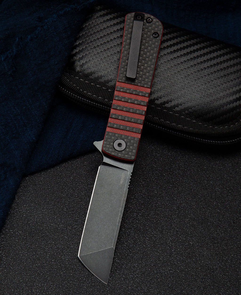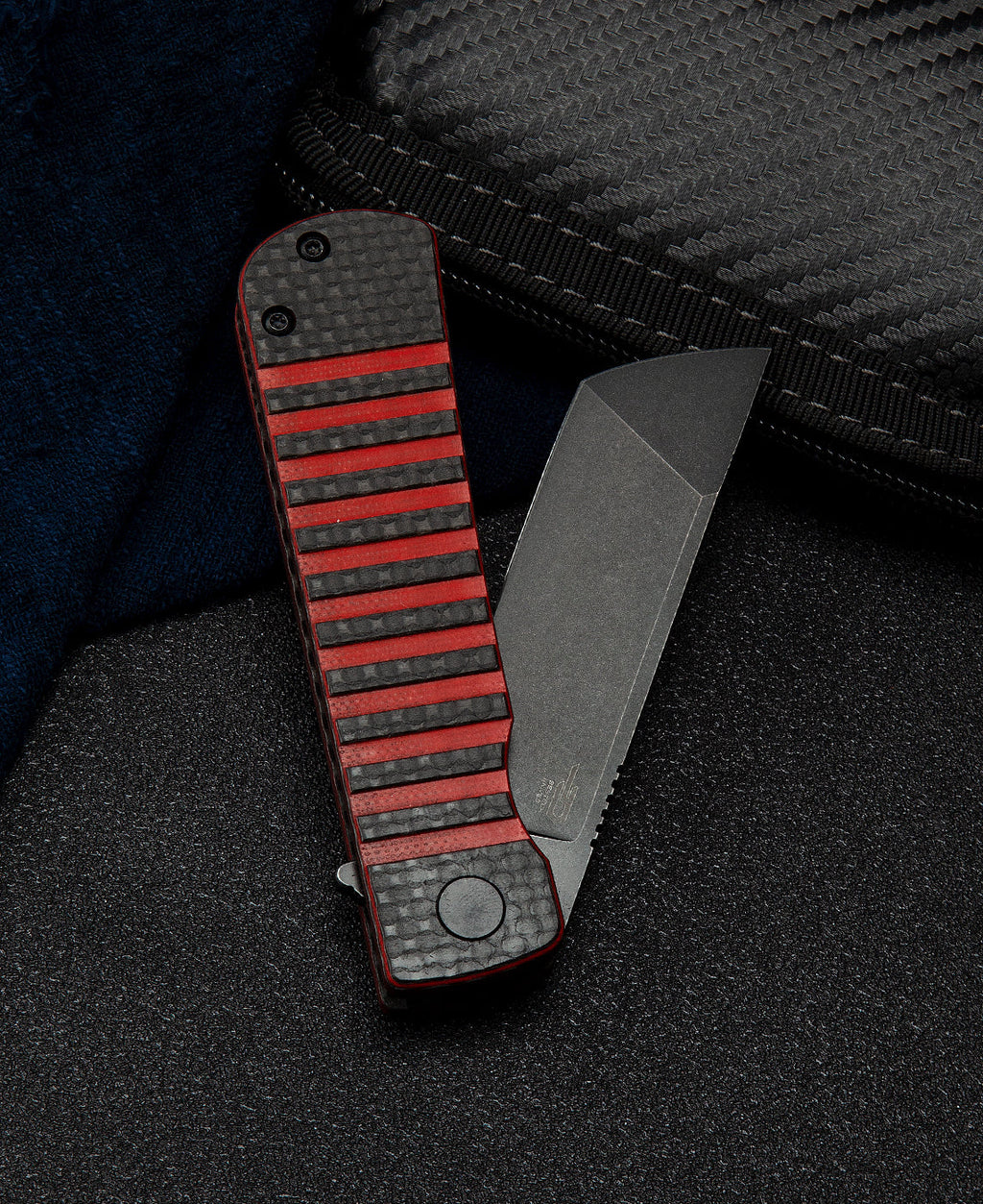 The Bestech Titan BL04C represents a refined approach to everyday carry design, combining proven materials with thoughtful engineering. Built around a 154CM stainless steel blade with a professional black stonewash finish, this knife delivers reliable edge retention and corrosion resistance suitable for demanding tasks. The blade measures 2.96 inches with a substantial 3.0mm thickness, providing structural integrity without excessive weight. The handle showcases a sophisticated interlayer construction pairing carbon fiber with G10, creating a lightweight yet durable grip that resists wear and environmental degradation. Finished in black with red accents, the design balances aesthetics with functionality. A titanium clip ensures secure carry, while the ceramic ball bearing system enables smooth, consistent blade deployment. The liner lock mechanism provides dependable blade security during use. At just 67 grams with a closed length of 3.84 inches, the Titan BL04C excels as a compact EDC tool that doesn't compromise on capability. The 6.89-inch overall length offers practical reach when deployed. Designed by Keanu, this knife reflects meticulous attention to proportions and material selection, making it an excellent choice for professionals and enthusiasts who demand precision and reliability in their cutting tools.