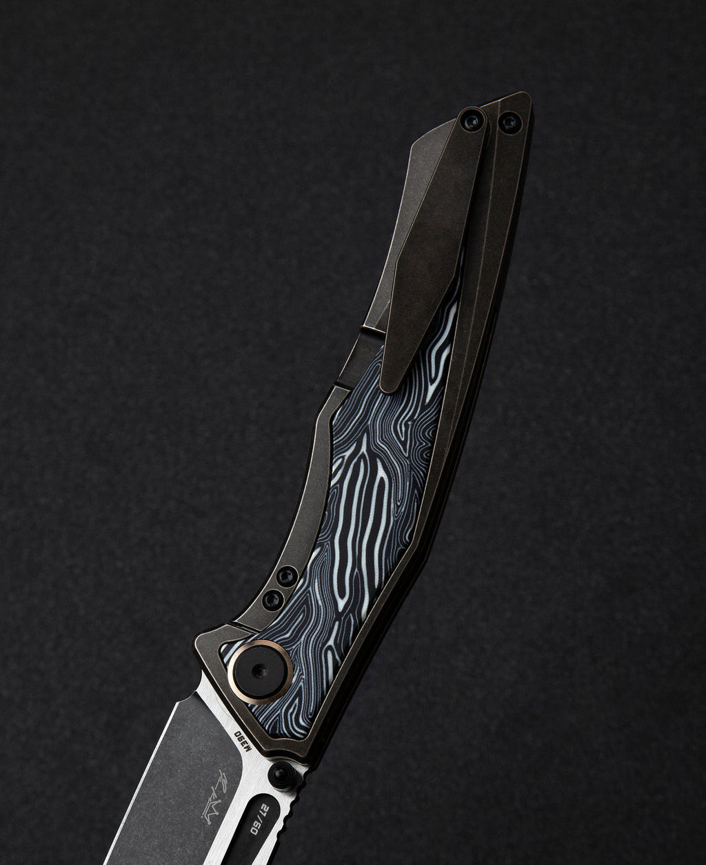 The Bestech Togatta BT2102B represents a pinnacle of modern folding knife engineering, combining premium materials with meticulous craftsmanship. Its M390 stainless steel blade, finished in black PVD with satin accents, delivers exceptional edge retention and corrosion resistance—ideal for demanding cutting tasks. The blade's 0.15" thickness provides optimal balance between durability and cutting performance. The handle showcases a sophisticated titanium frame paired with G10 inlay accents, creating a lightweight yet robust structure that resists wear and environmental degradation. The frame lock mechanism ensures secure blade deployment and reliable one-handed operation. At 139 grams, this knife maintains excellent portability without sacrificing substantial feel in hand. Measuring 9.1" overall with a 5.36" closed length, the Togatta fits comfortably in pocket or pack. The 3.74" blade length provides versatility for general cutting, utility work, and outdoor applications. Ceramic ball bearings enable smooth, responsive blade action that remains consistent through extended use. Designed by Koenscraft, this knife reflects thoughtful ergonomics and functional aesthetics for serious knife enthusiasts and professionals.